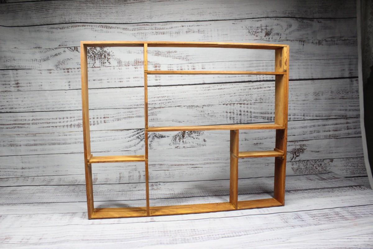 19" x 16" Handmade wooden shelving space, there is no significant cracking or chipping.