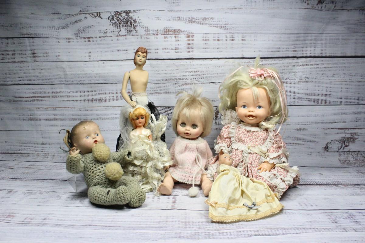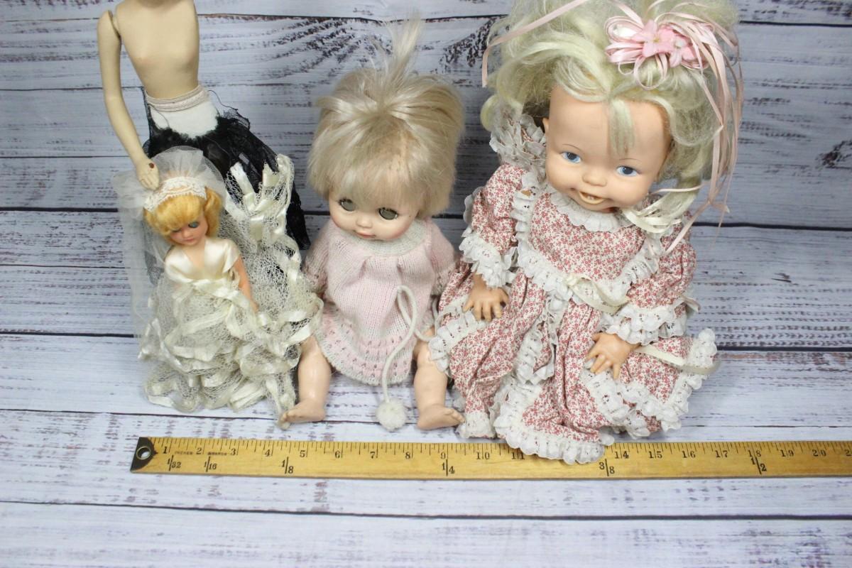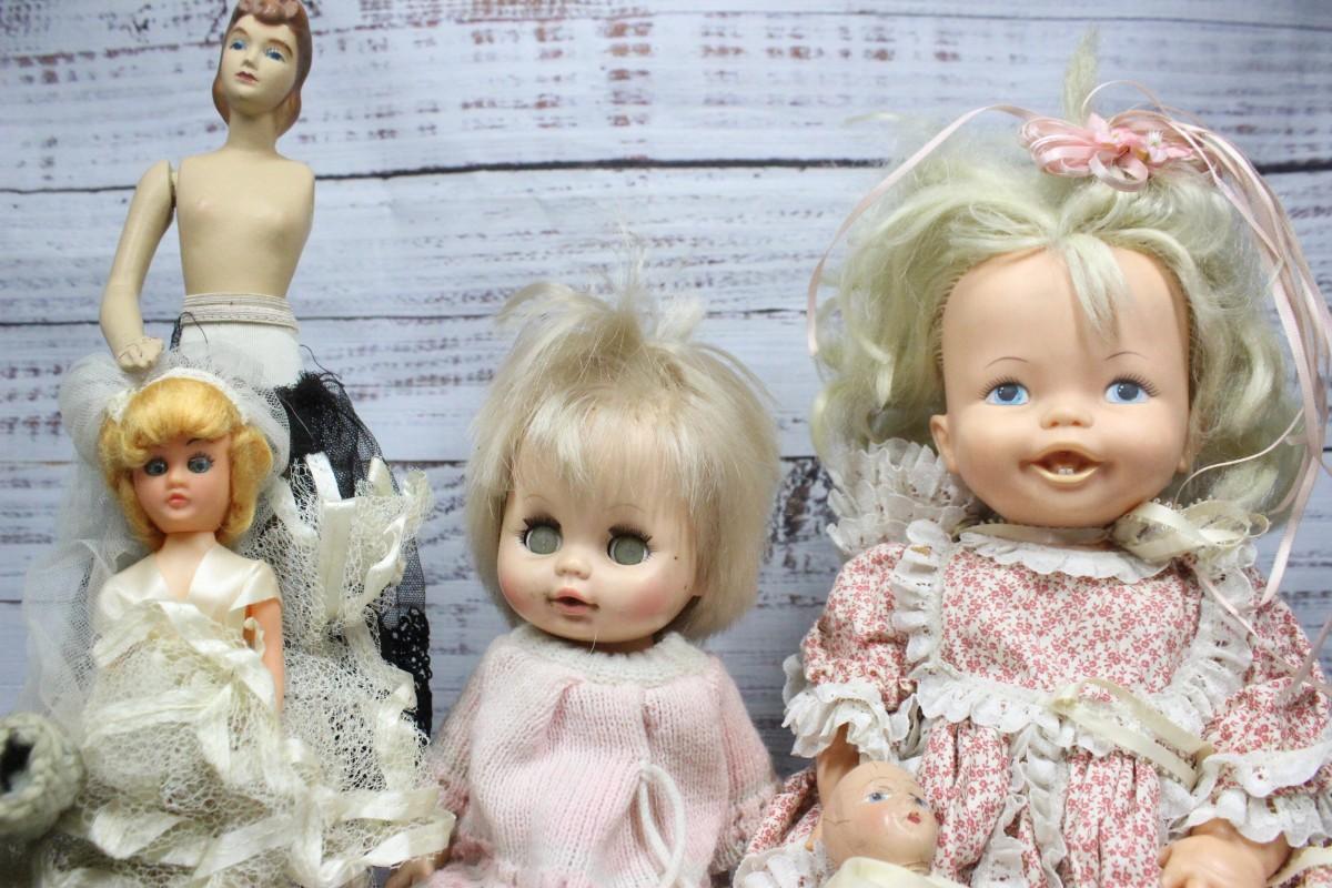 Vintage lot of various dolls and parts, the condition and size of each doll varies, see pictures for more details.