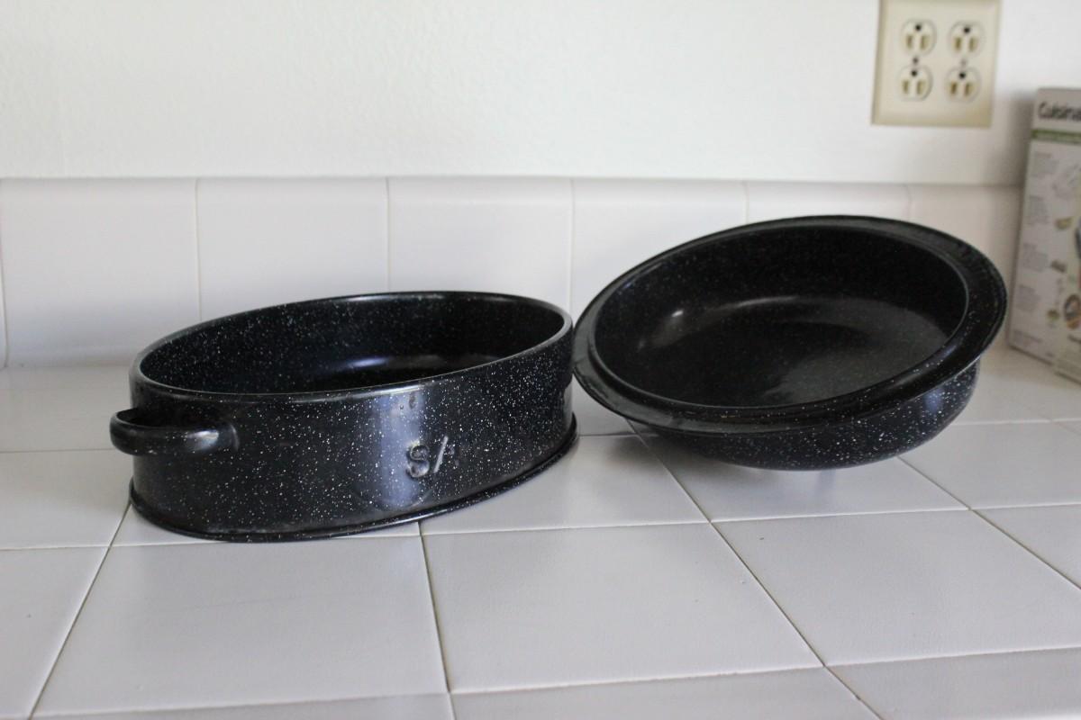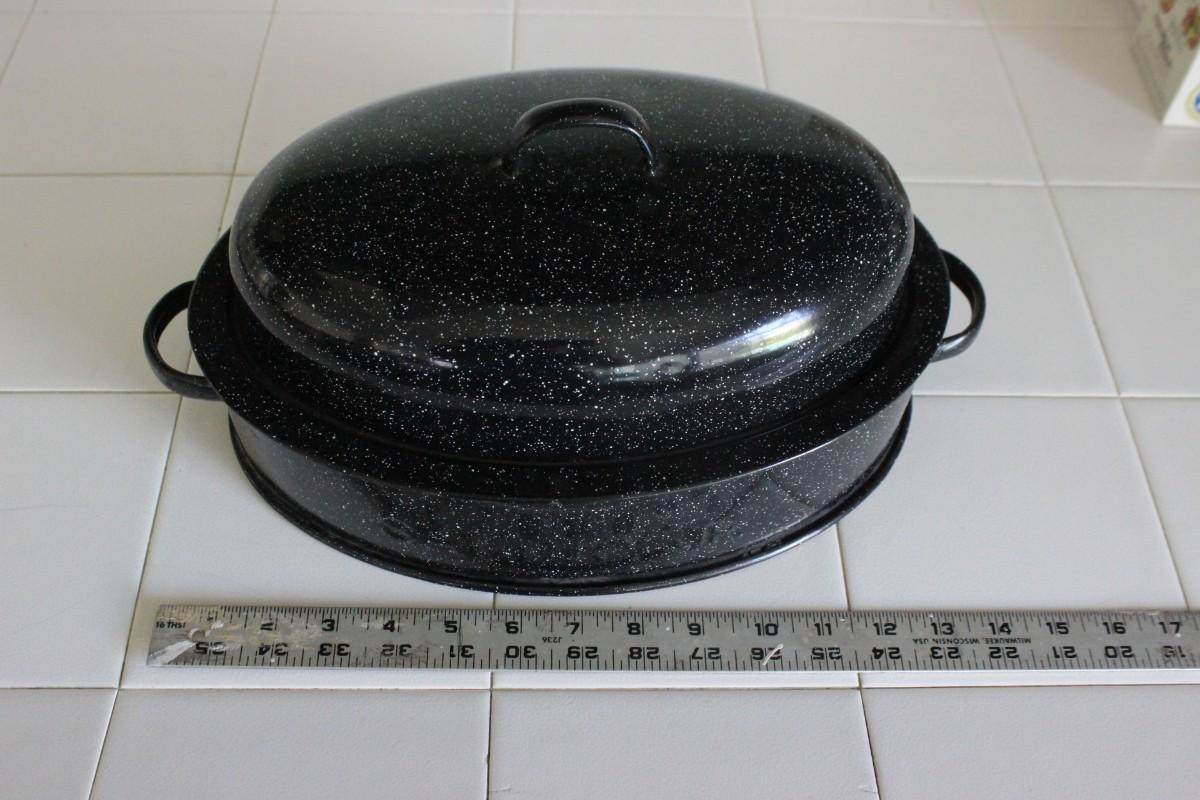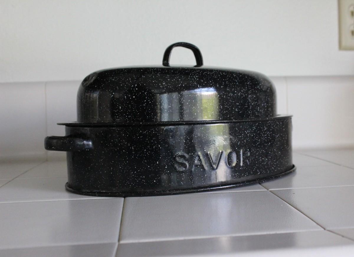 Vintage Savory Jr. Blue Enamelware Chicken Roaster
