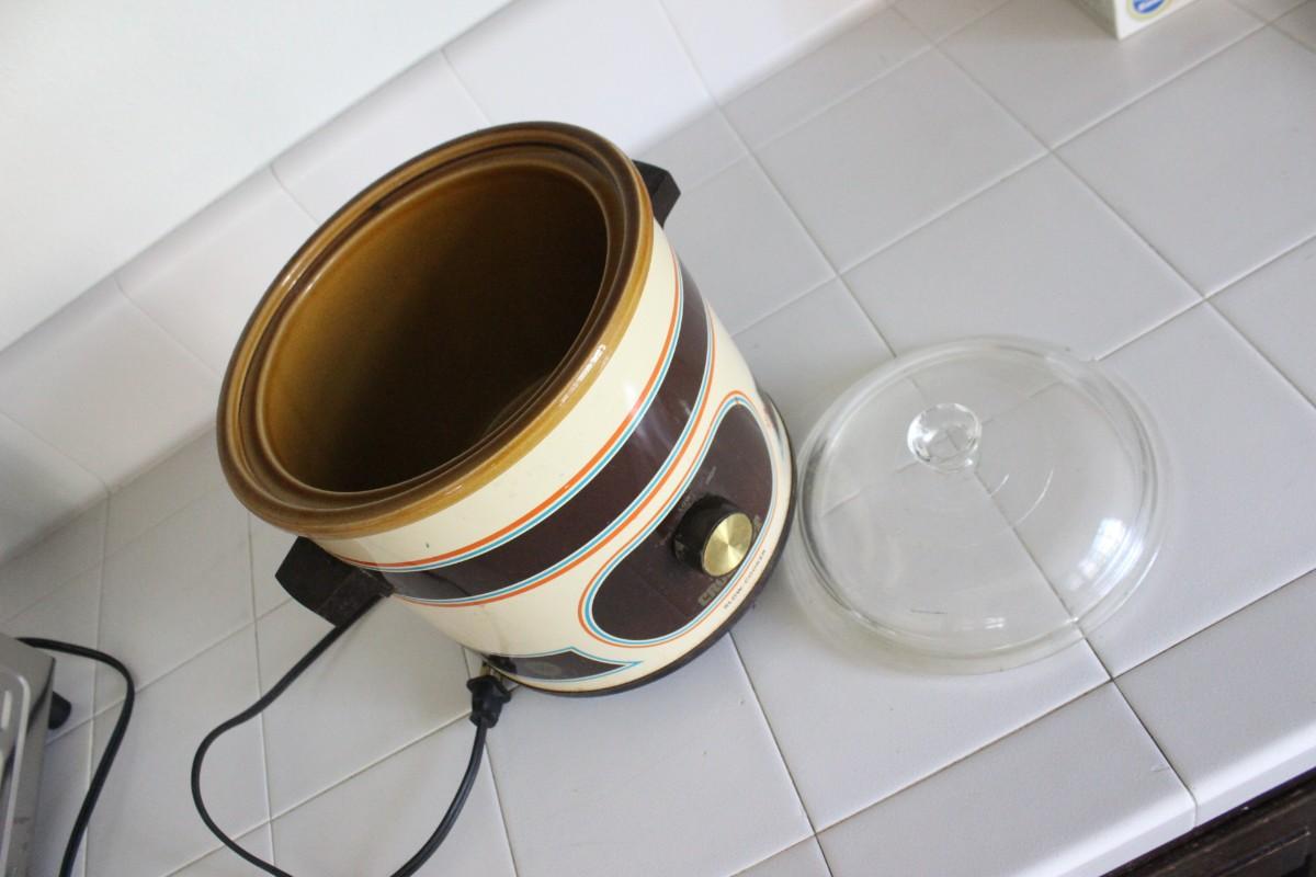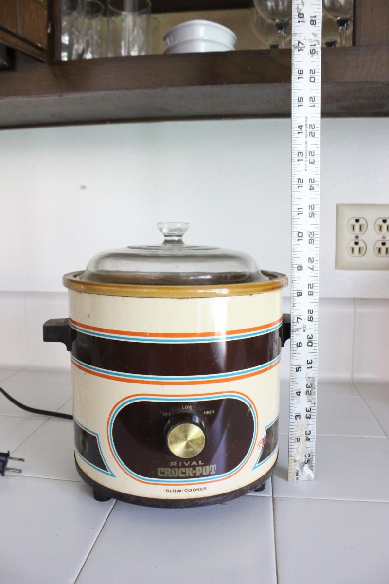 Vintage Rival Crock Pot Slow Cooker, there is some wear to the piece, but there is no significant damage to the pot or glass lid. This crock pot is untested.