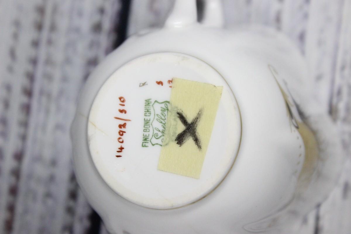 Shelley Gold Feather Motif Teacup & Saucer English Bone China