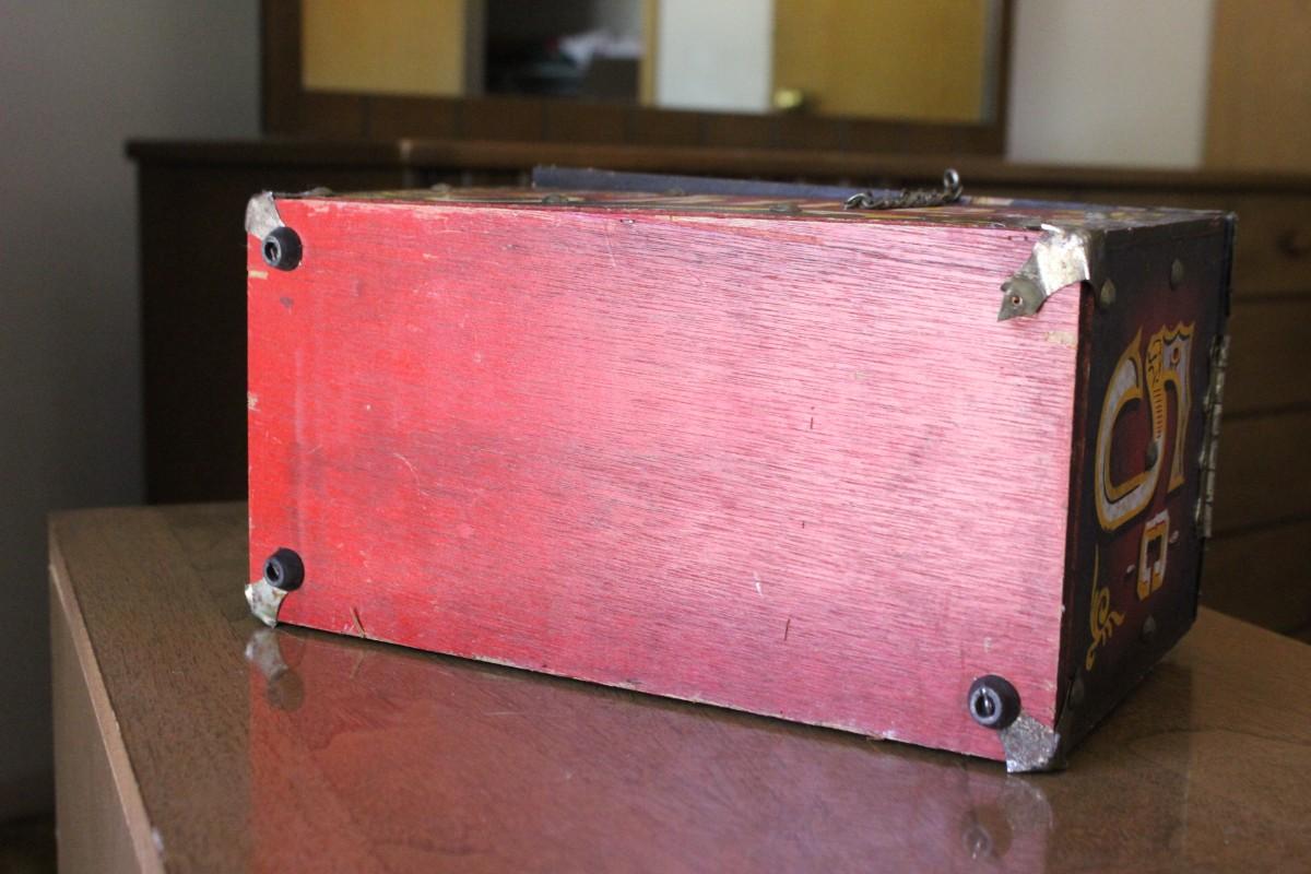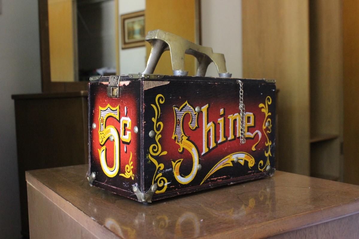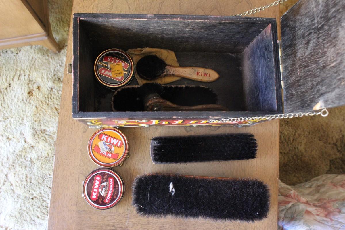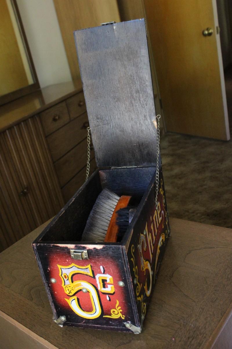 Vintage Decorated 5 Cent Red & Black Shoe Shine Box Kit