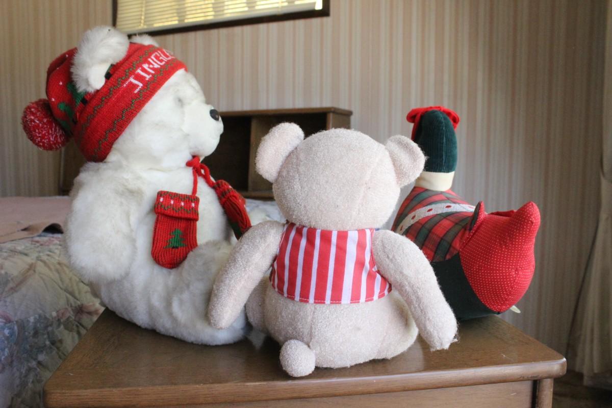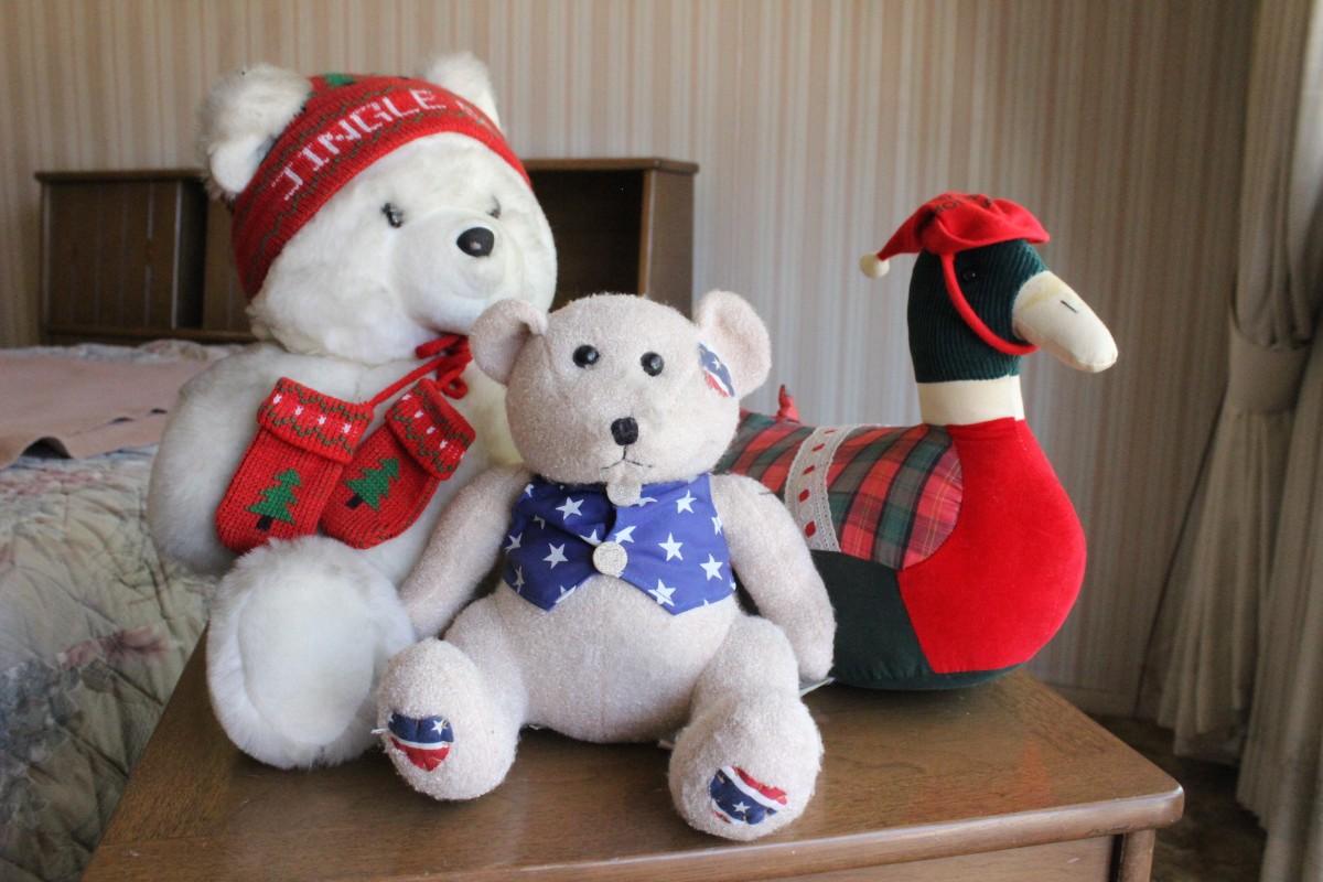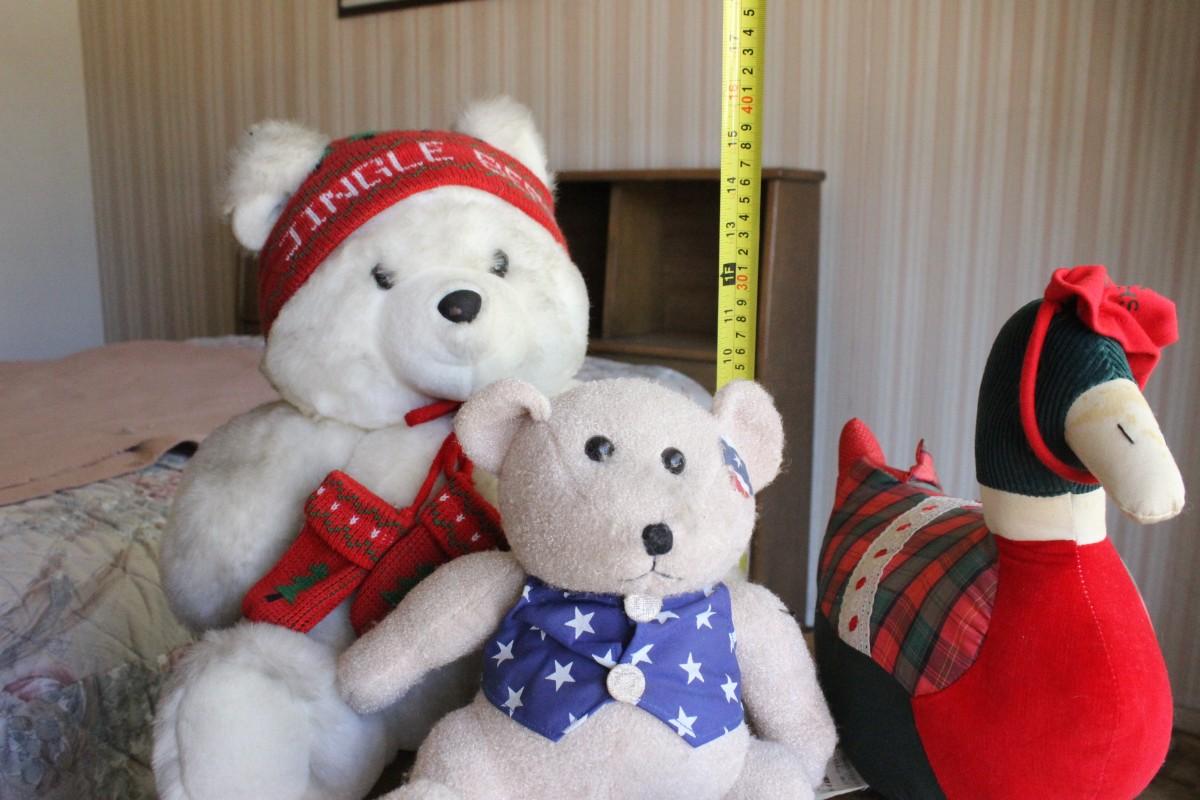 Lot of Christmas and Patriotic Themed Stuffed Animals, there is no significant rips or tears to any of the stuffed animals see pictures for more details.