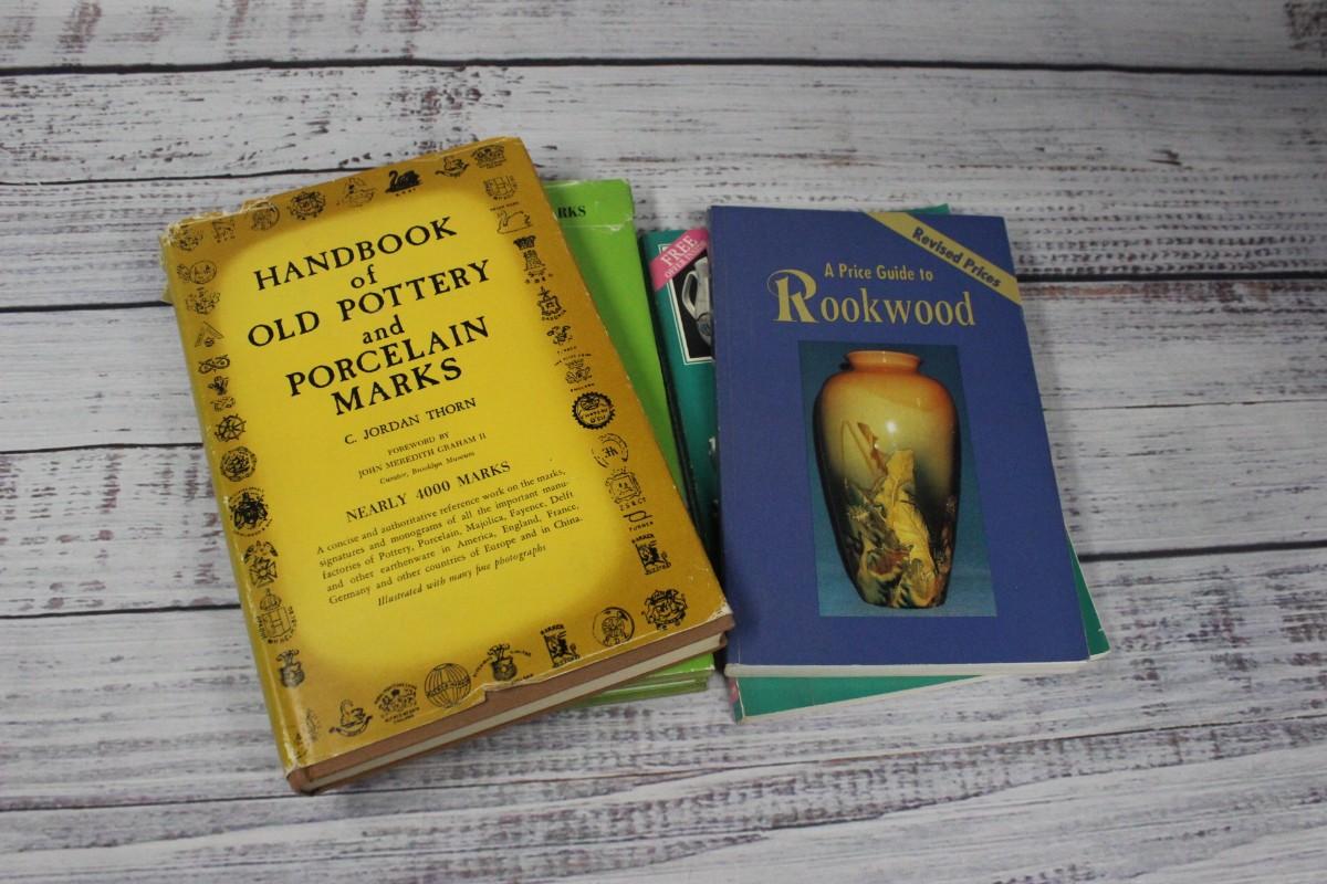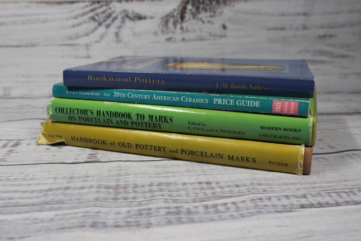 Set of 4 Pottery Collector Books Reference Guides. Includes Rookwood Pottery, a pricing guide, and a couple pottery mark identification books.
