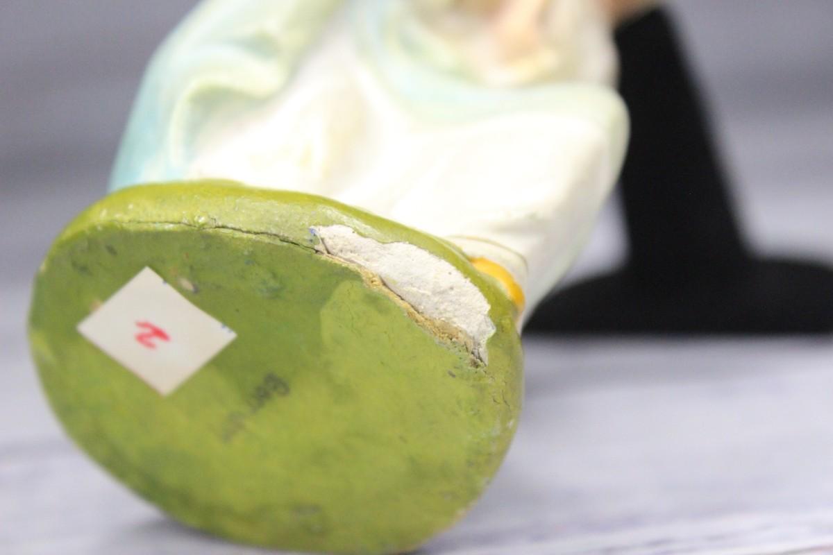 Vintage Made in Germany Praying Virgin Mary Statuette, there is no significant damage to the piece. There is some chipping at the base of the statuette, see pictures for more details.