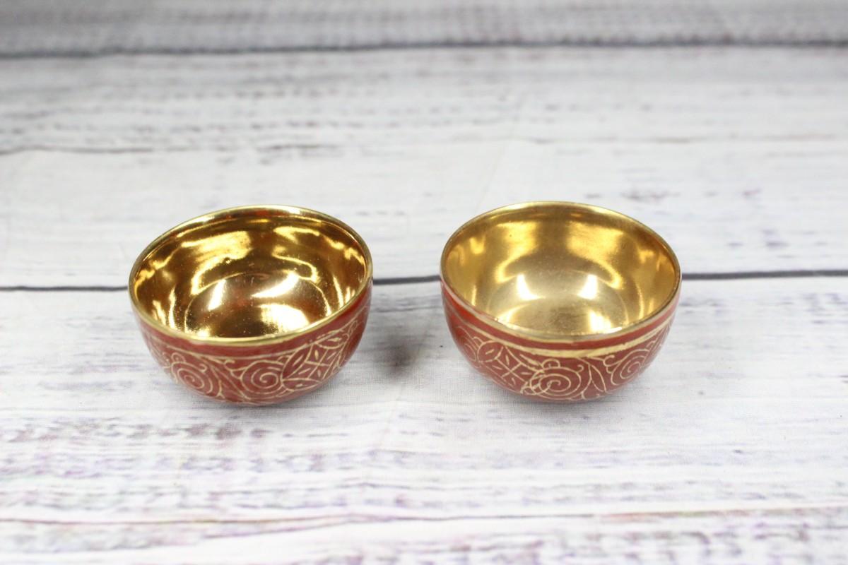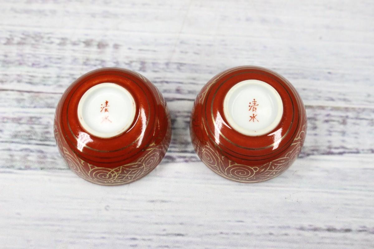 Vintage Japanese Kutani Porcelain Sake Cup - red and gold Guinomi cup. There is no significant cracks or chips to the cups and is in good condition.