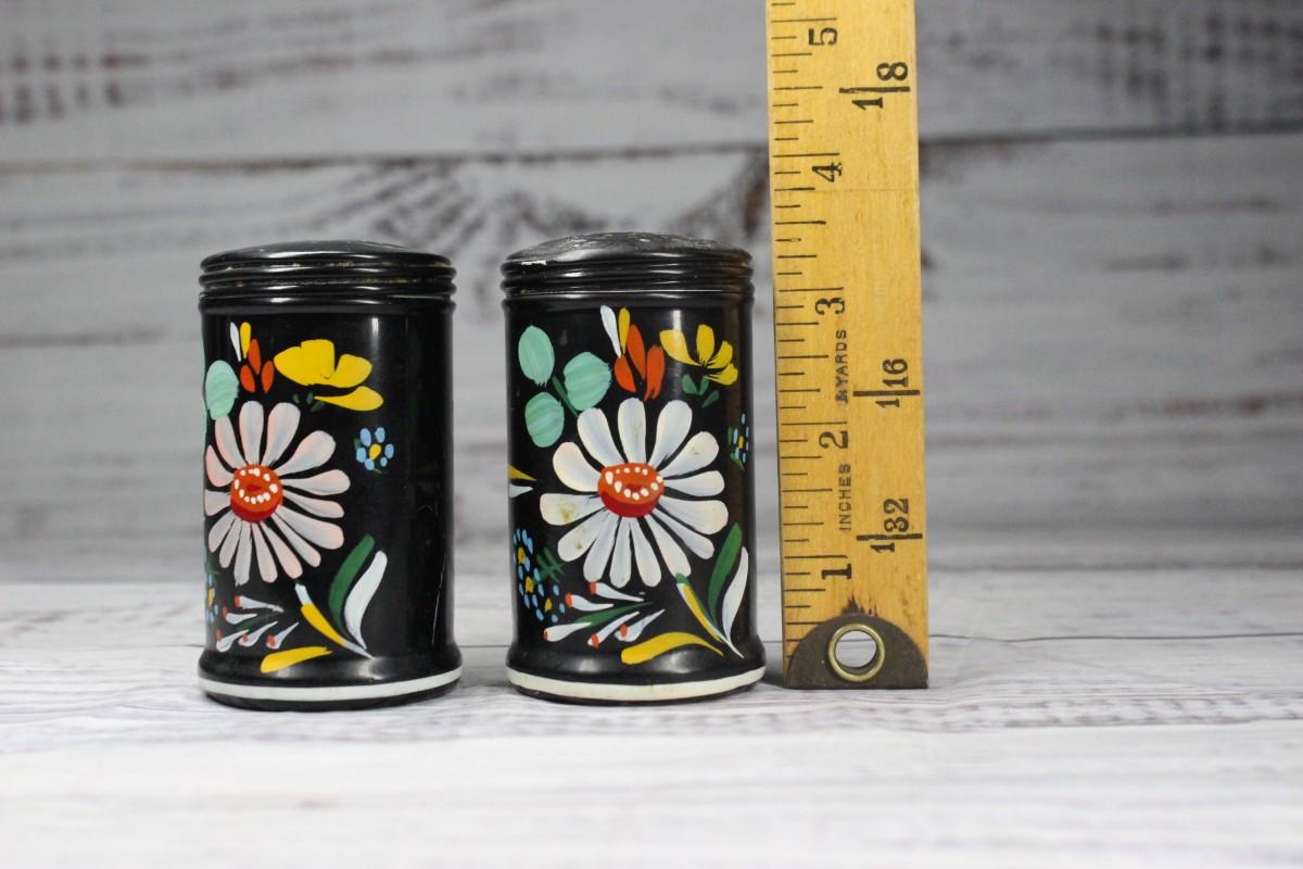 Retro Daisy Flower Painted Metal Salt & Pepper Shakers