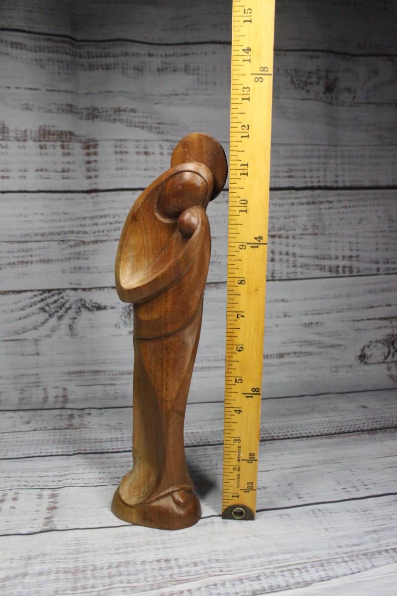 Abstract Carved Wood Statuette of Virgin Mary with Child, there is no damage to the piece and is in good condition see pictures above for more details.
