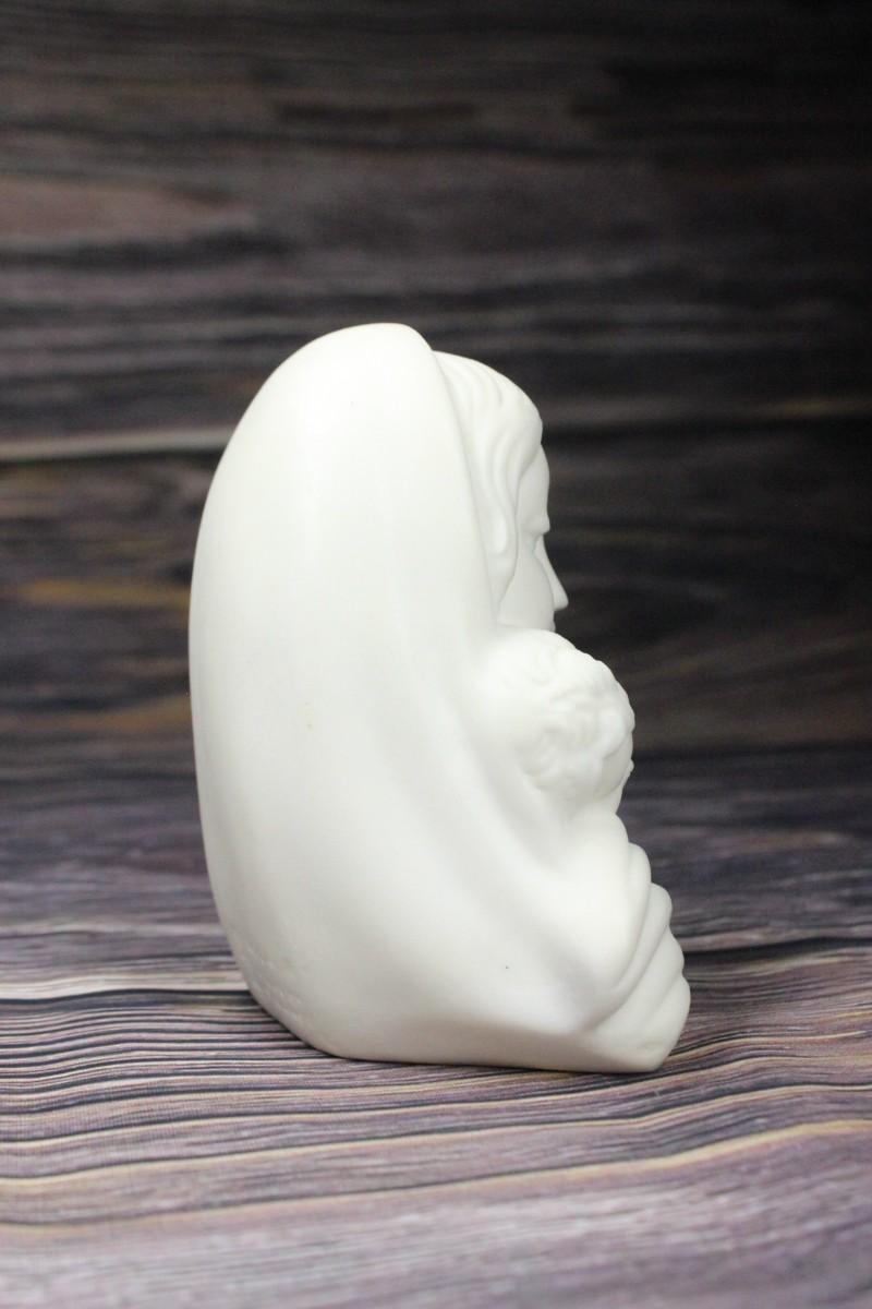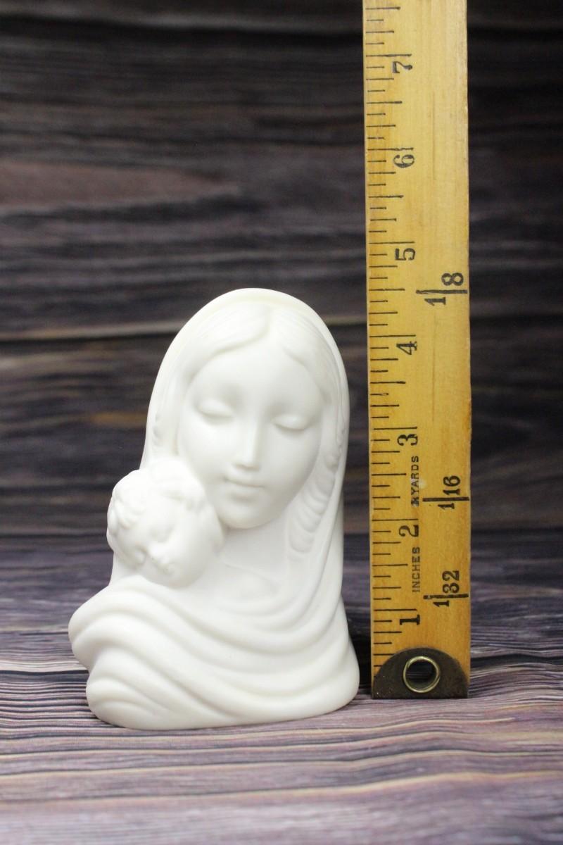 4.5" Made in France Madonna with Child Bust, there is no significant damage to the piece and is in good condition. The inscription on the back of the bust reads: Regala Made in France.