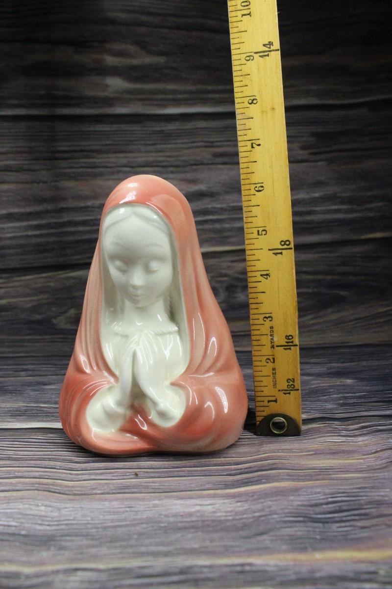 Vintage Royal Windsor Ceramic Praying Mary Planter with coral veil, there are no significant chips or scratches to the piece and is in good condition.