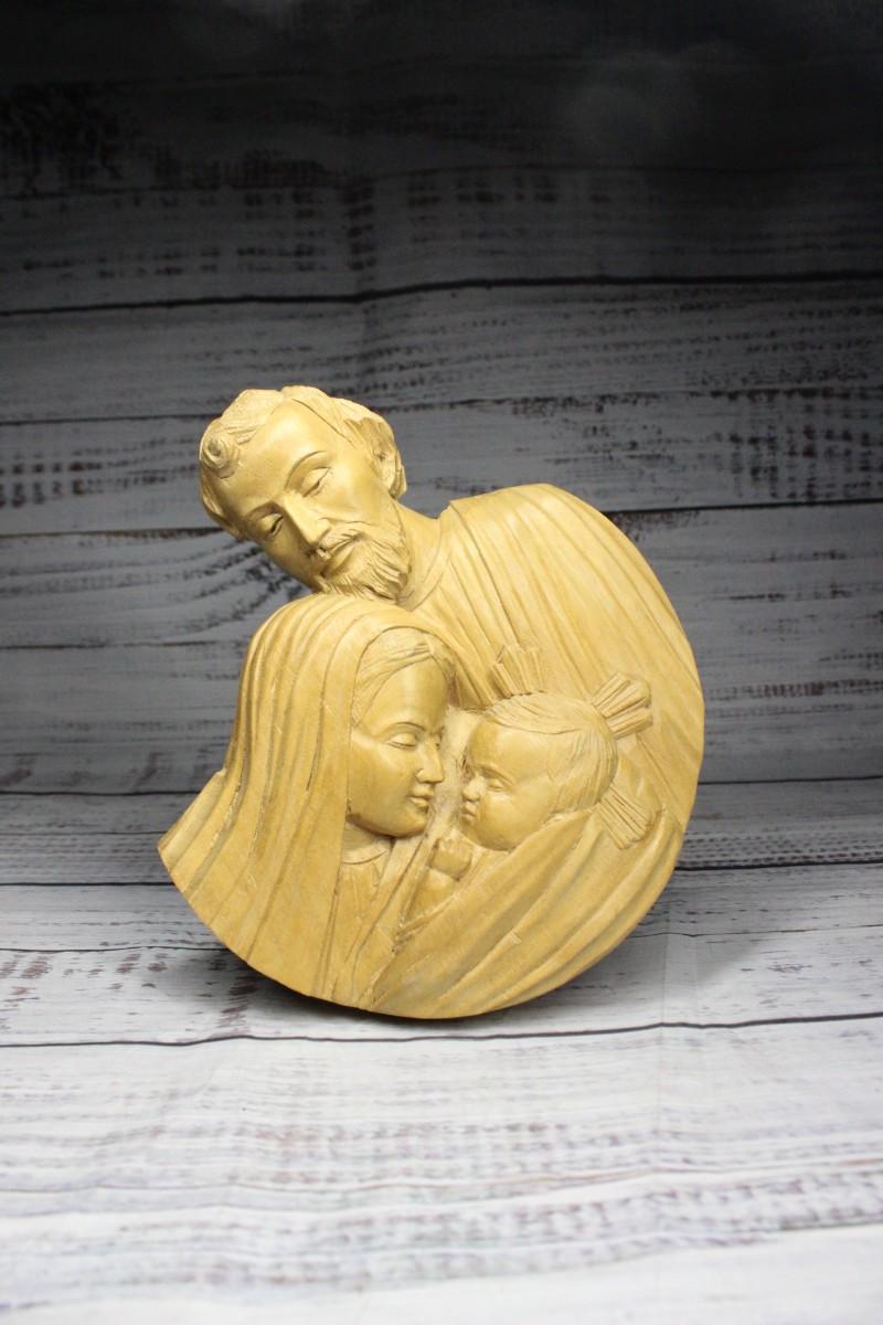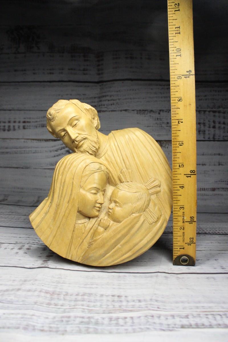 Mary, Joseph, and Child Decorative Wall Decor, there is no cracks or chips to the piece and is in good condition. See pictures above for size.