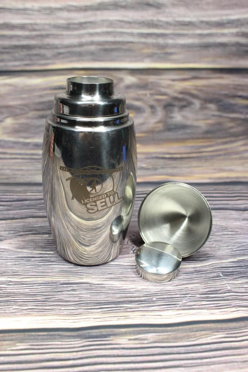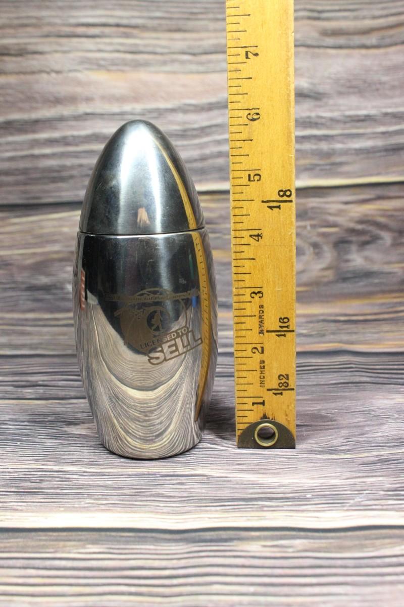 Stainless Steel Bullet Shaped Flask Bottle. Licensed to Sell is imprinted on one side.