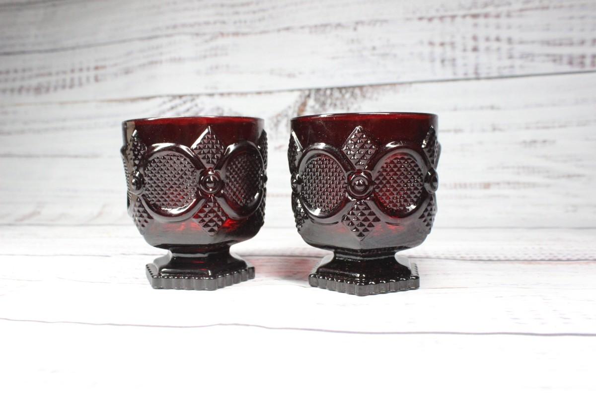 Vintage Avon Cape Cod Red Ruby Glass Footed Glass Set