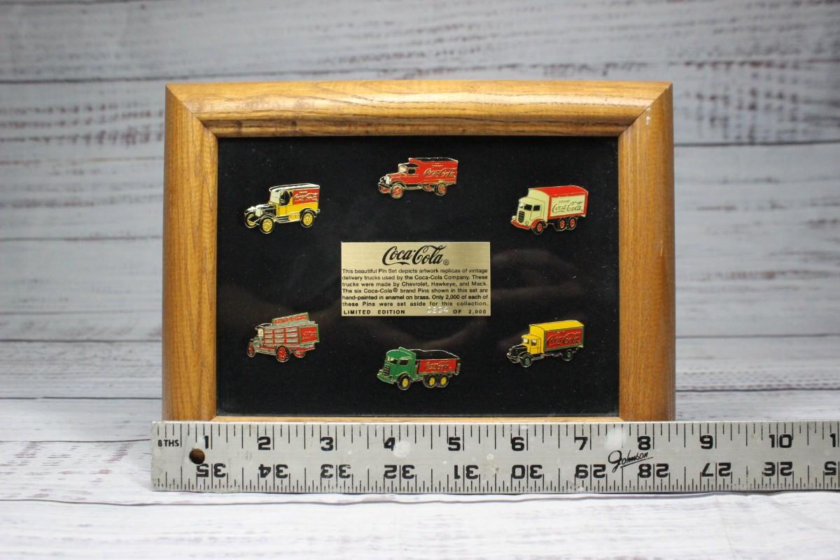 Vintage Coca-Cola Delivery Trucks Framed Lapel Pin Set Limited Edition 204 of 2,000. There is no significant damage to the frame or protective glass, see pictures for more details.