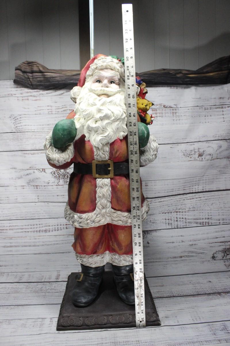 Santa Claus Lawn Decor Statue stands at around 30" stall, there is no significant damage to the piece and is in good condition. See pictures for more details.