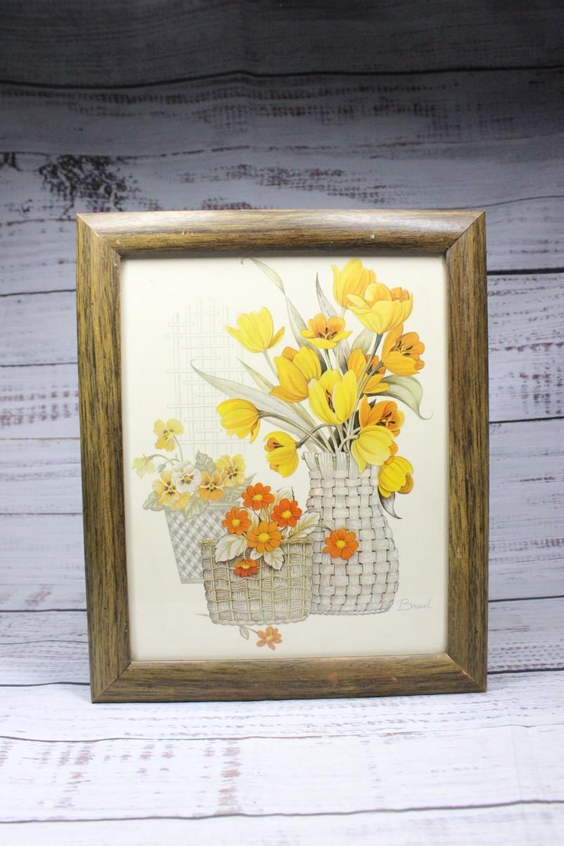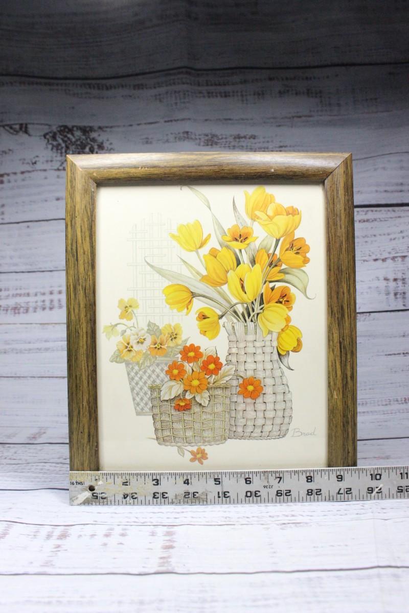 Vintage Framed Flower Hardboard Litho