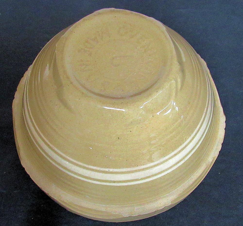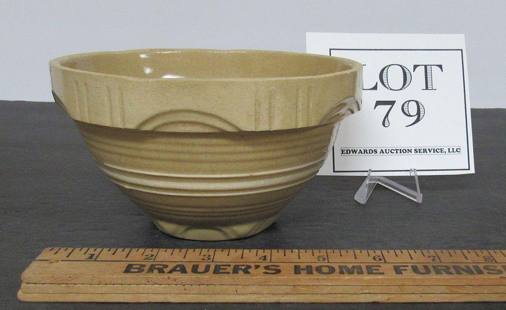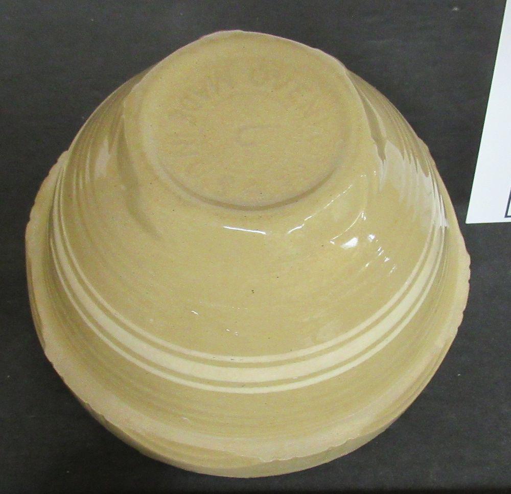 Nice Vintage Yellow Ware Striped Band Stoneware Mixing Bowl, #6 Ovenware, USA, 6 1/4" x 3 1/2"