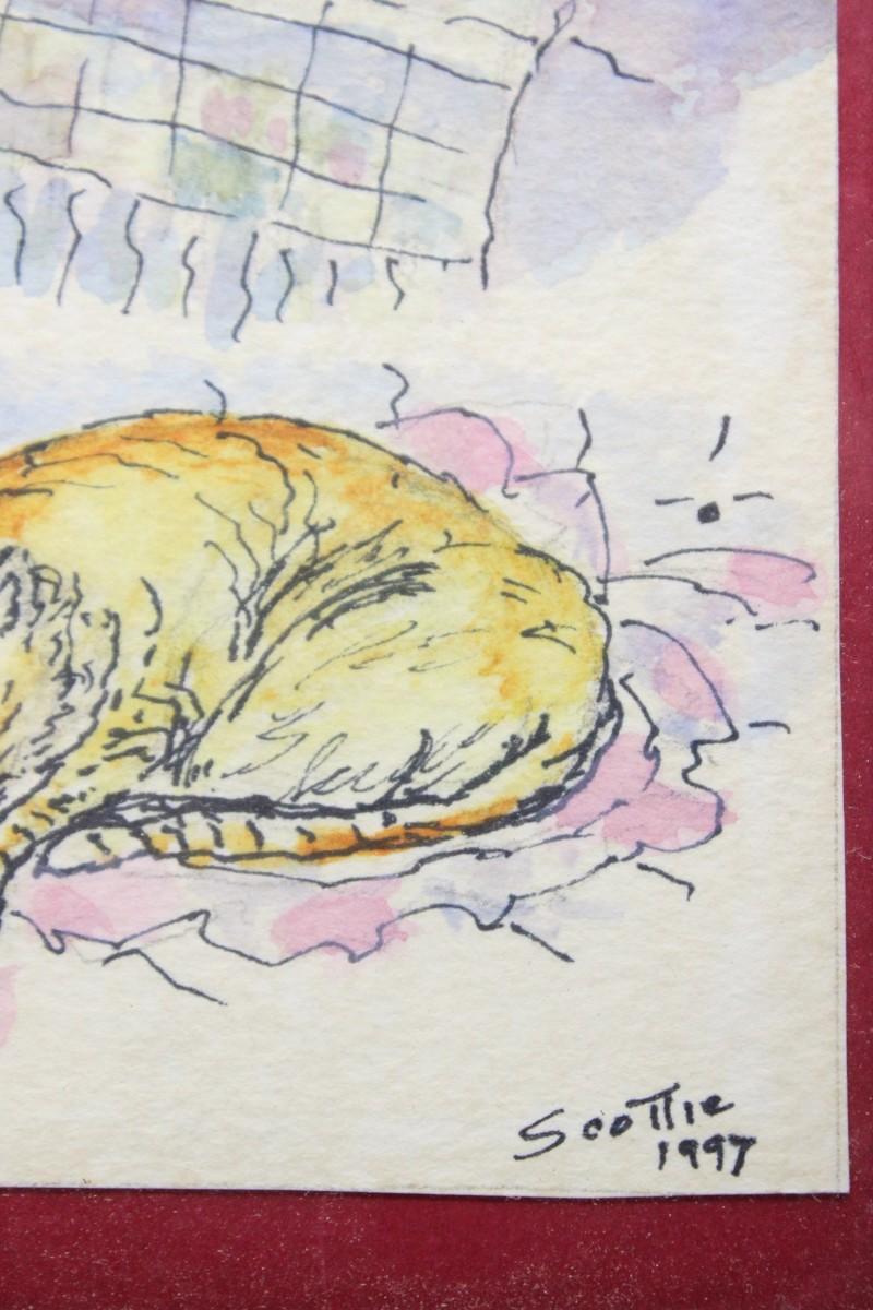 Vintage Framed Artwork of a Cat with Artist Signature