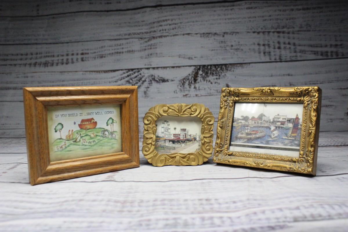 Vintage Set of Small Photo Frames with Various Pictures
