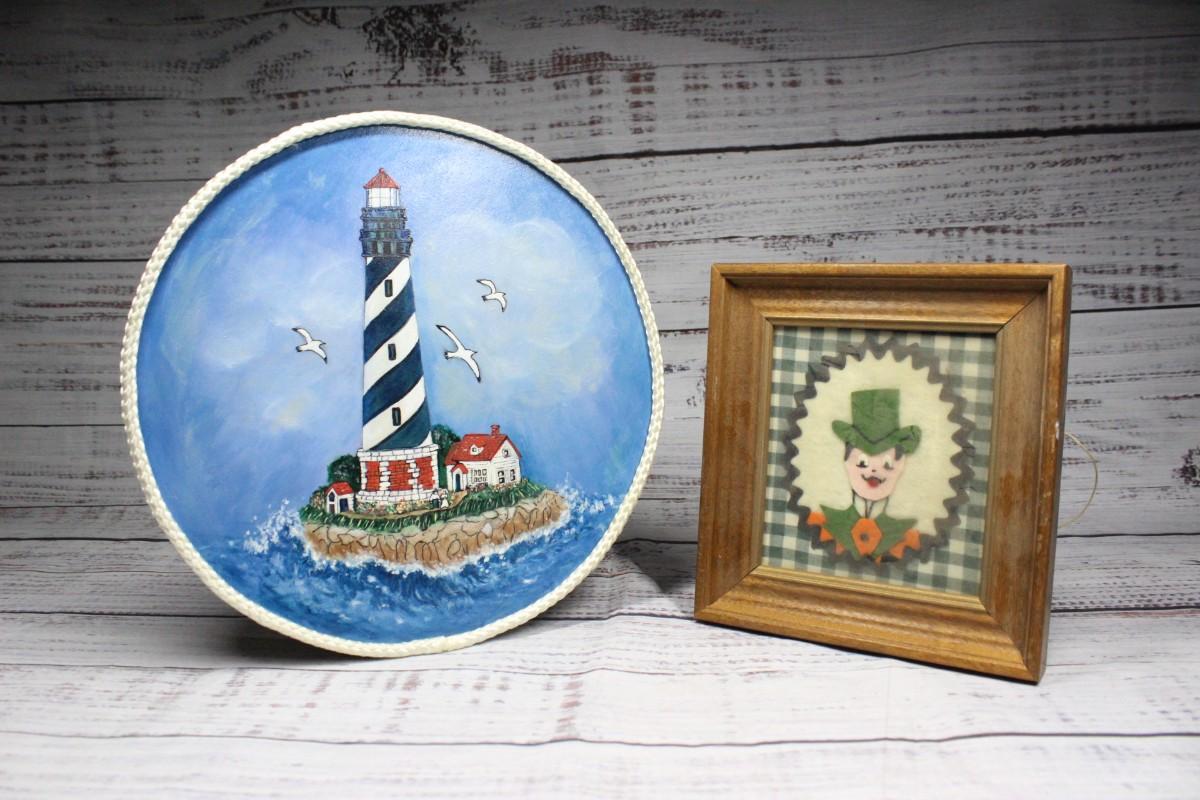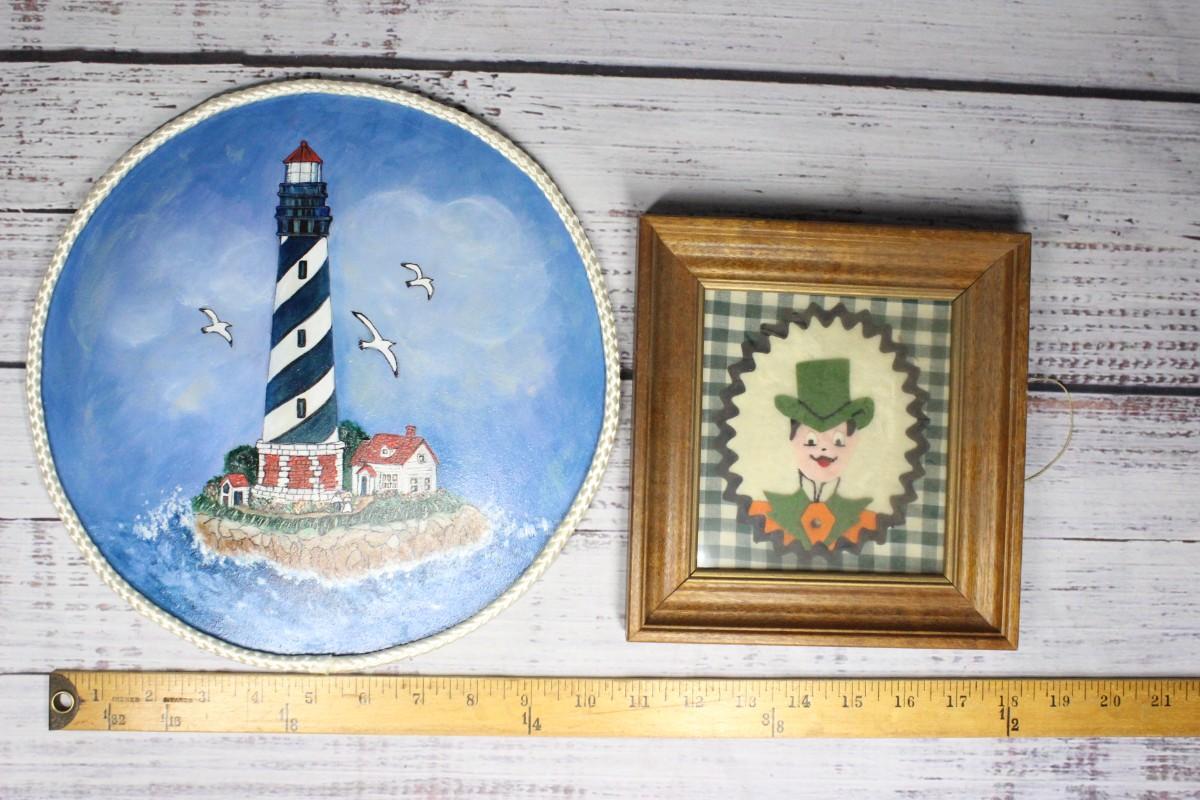 Pair of Vintage Handcrafted and Framed Art Projects