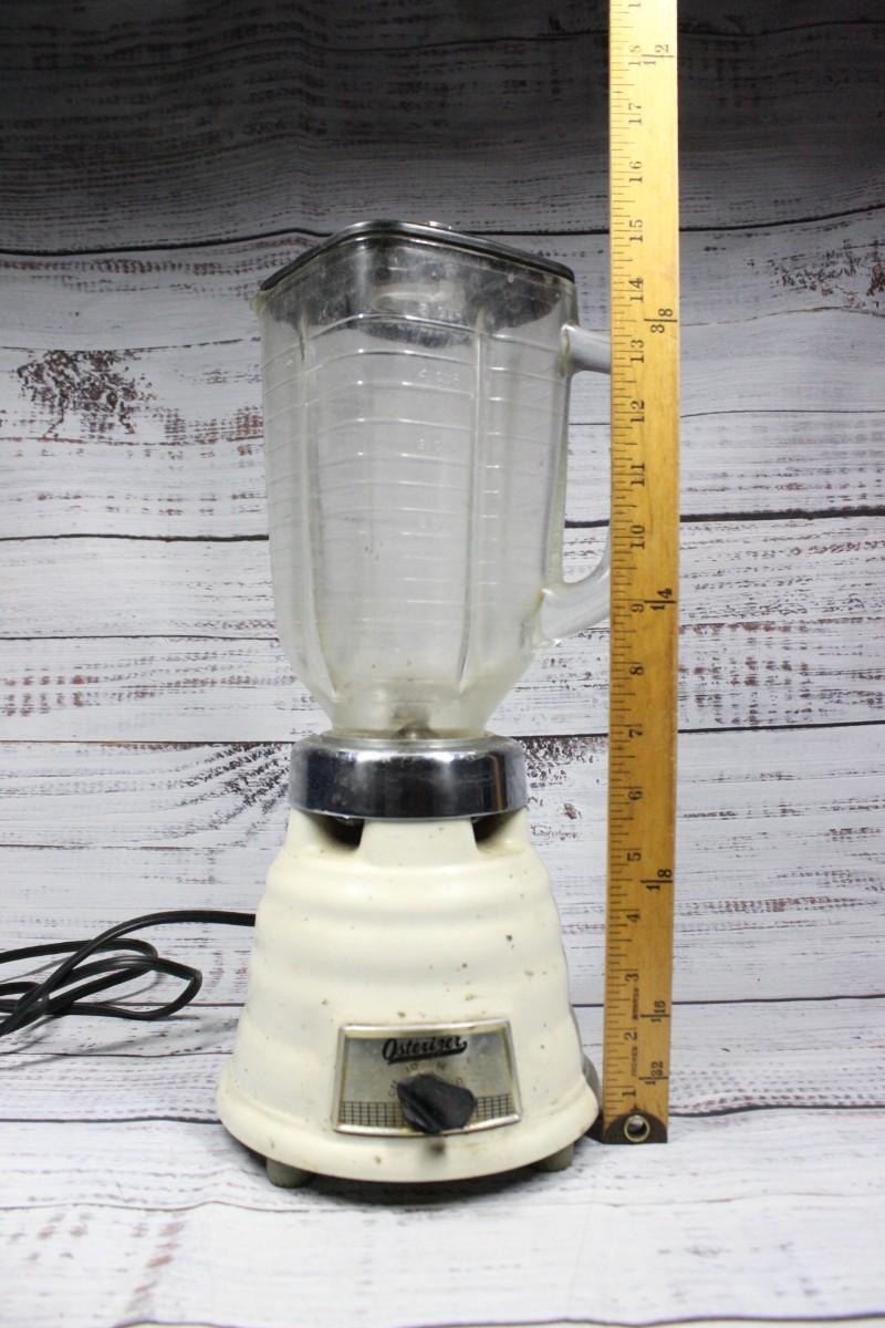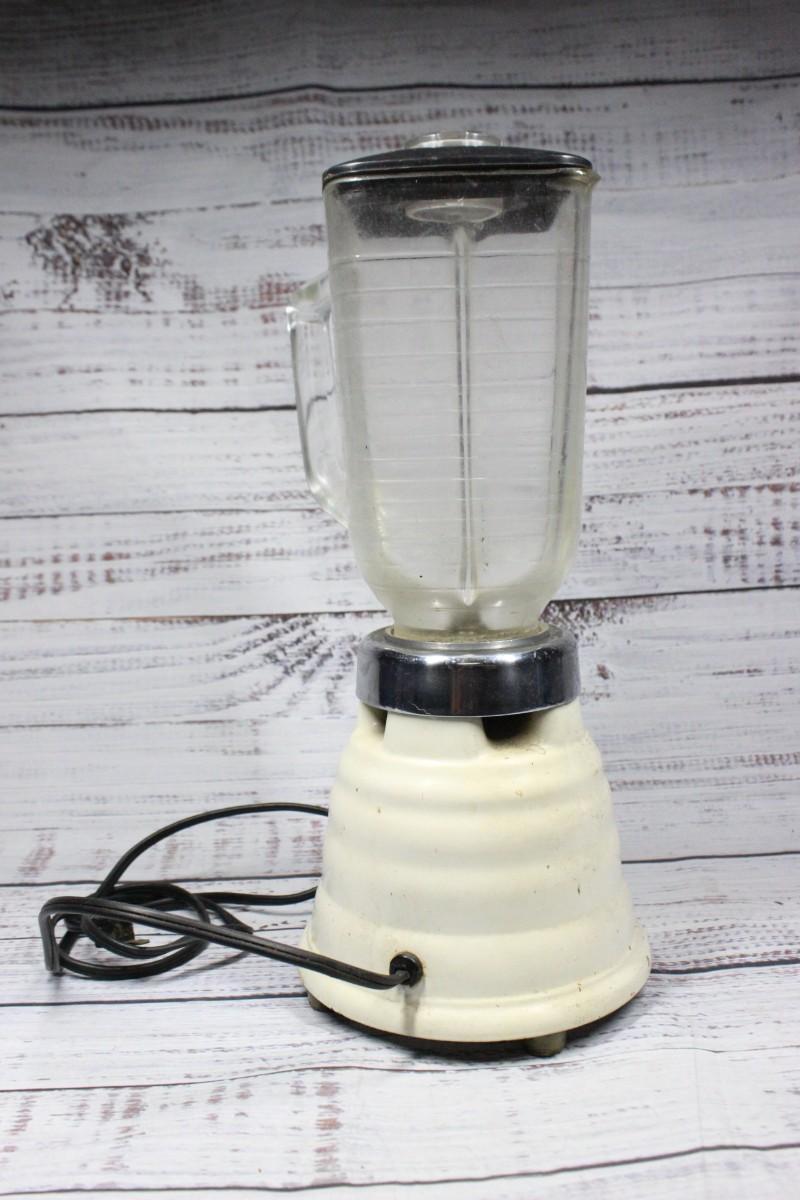 Vintage Osterizer Beehive Blender Model 448, there is some wear on the blender motor as well as the glass pitcher, but no significant damage or dents. See pictures for more details, has not been tested.