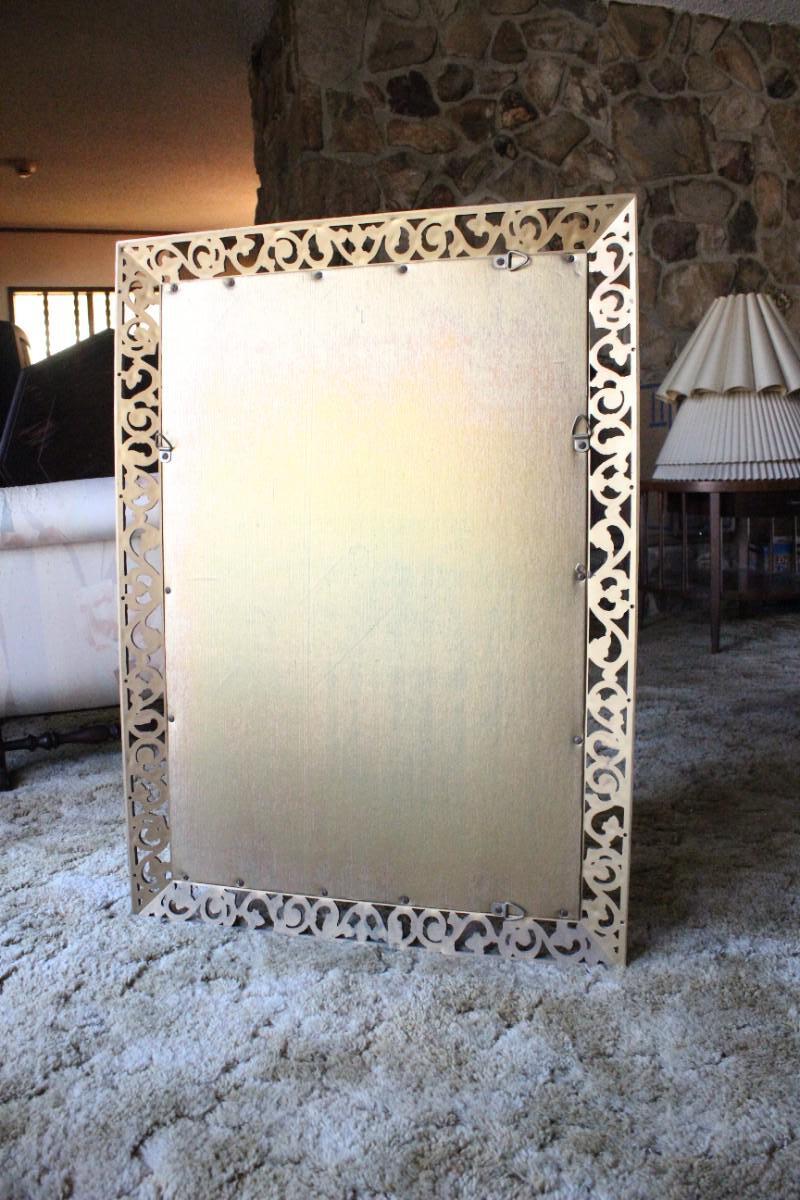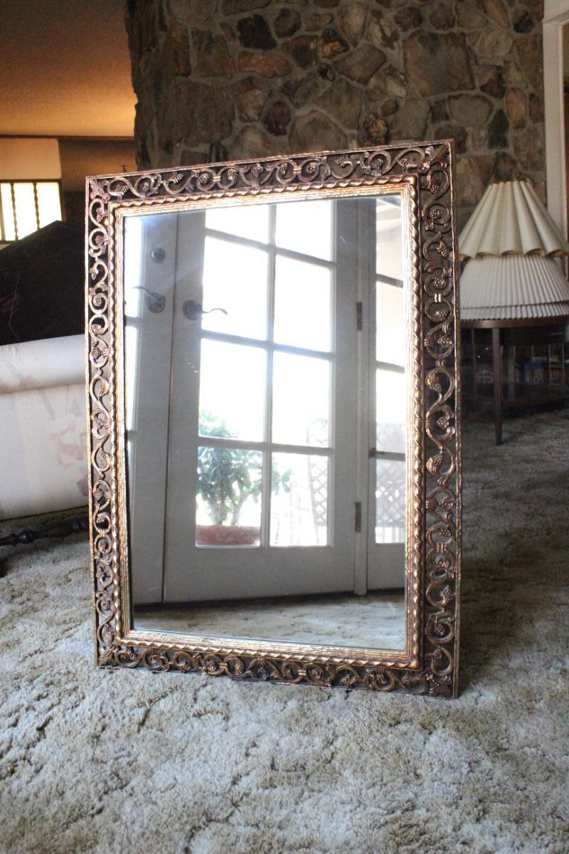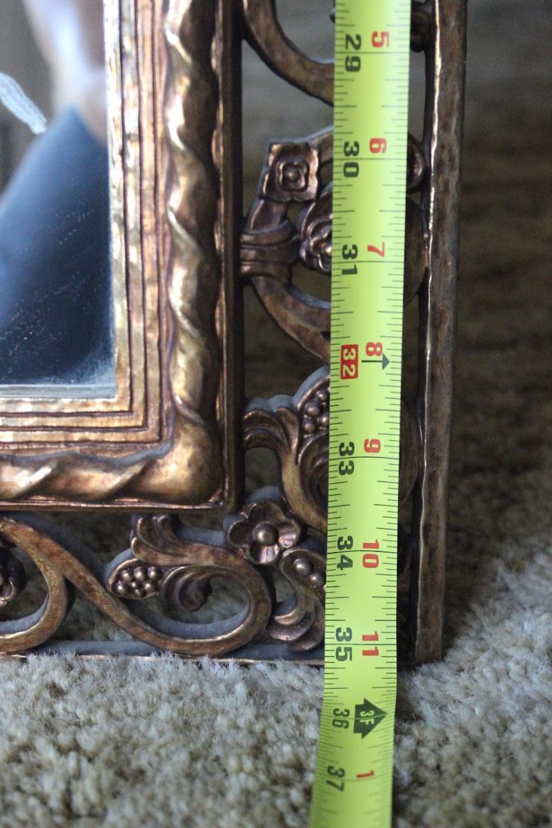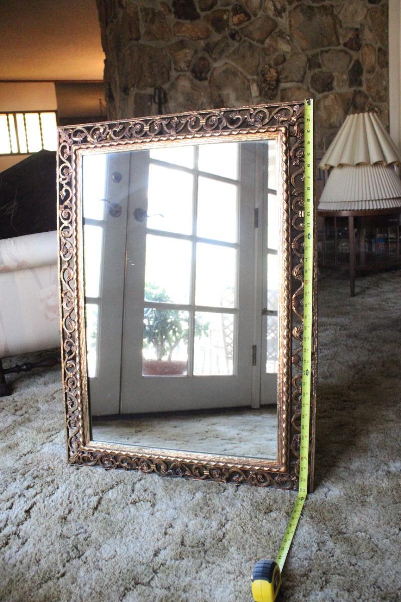 Home Decor Metal Frame Hanging Mirror, there's no damage to the frame or the mirror itself and is in good condition. See pictures for more details and for sizing.
