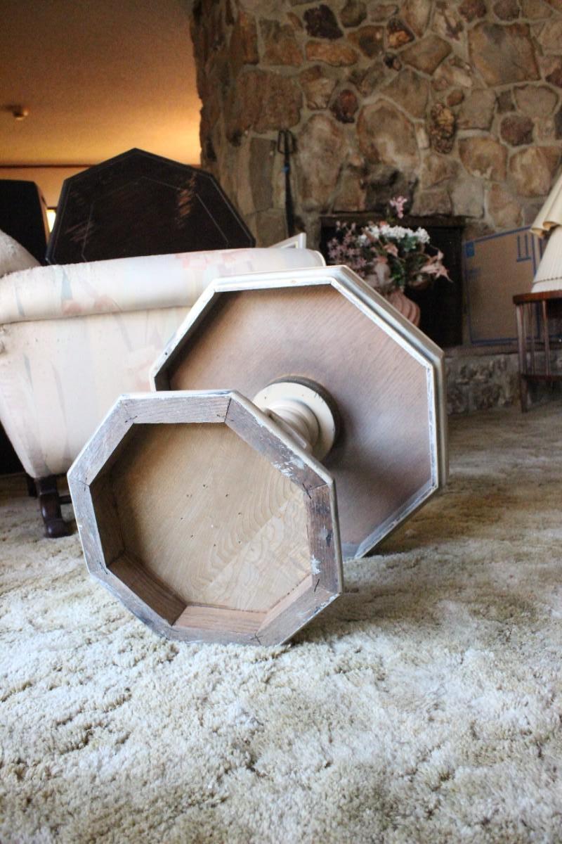 Vintage Light Wood Octagon Pedestal Table