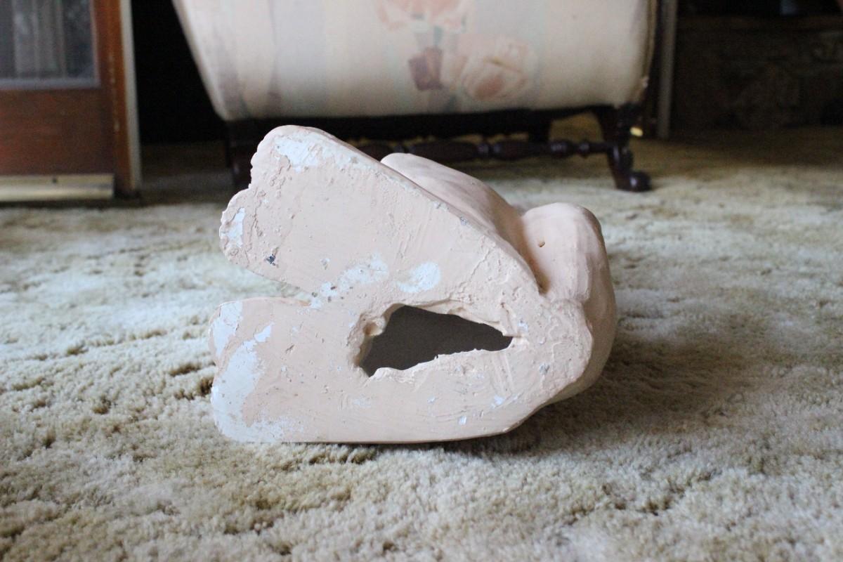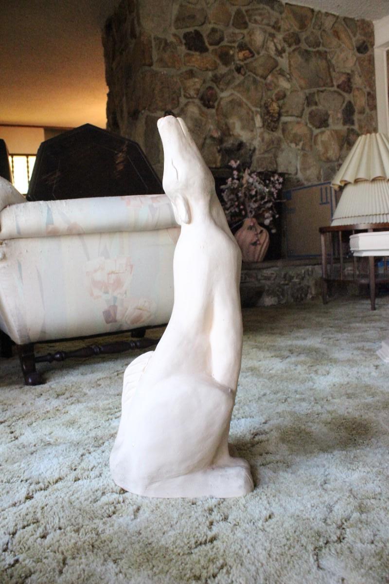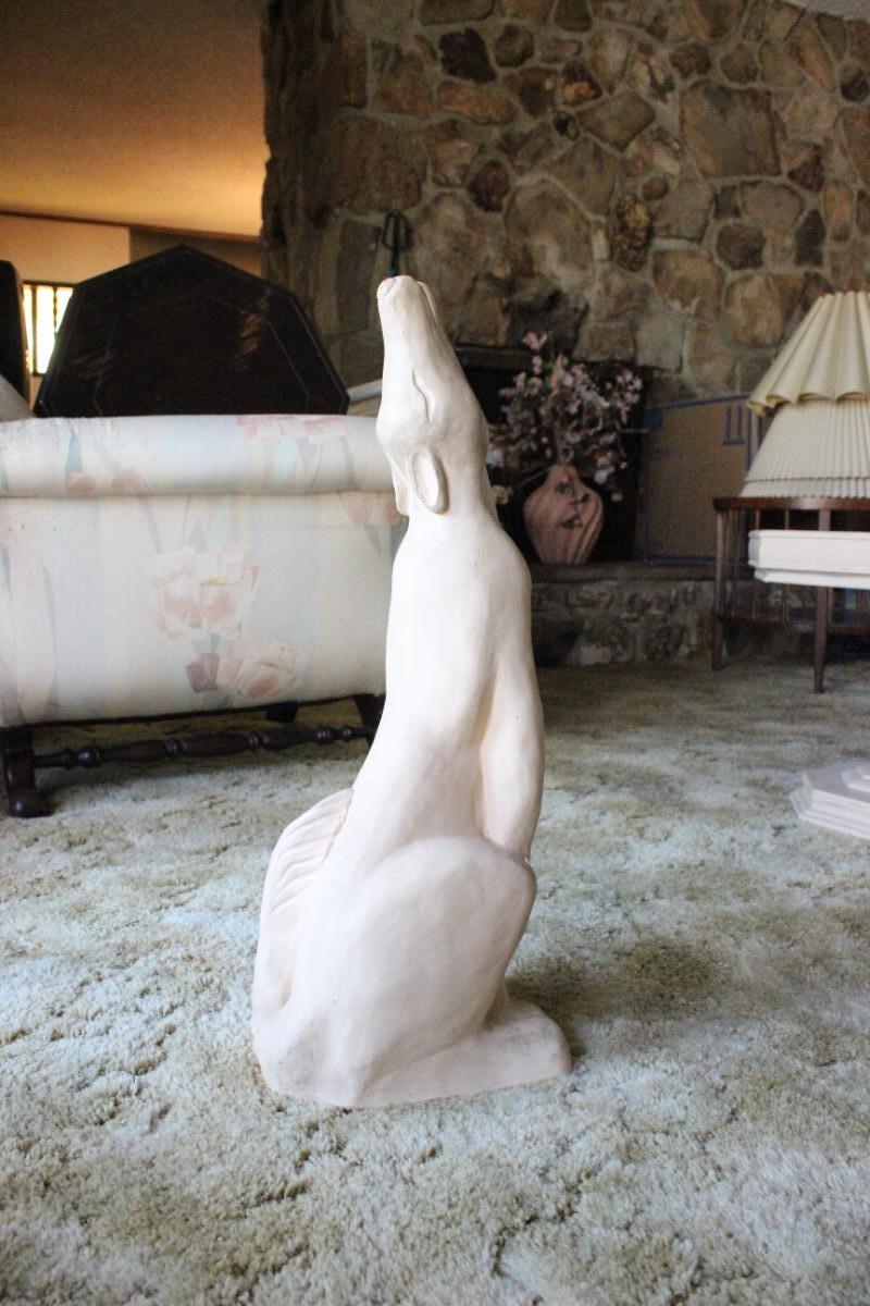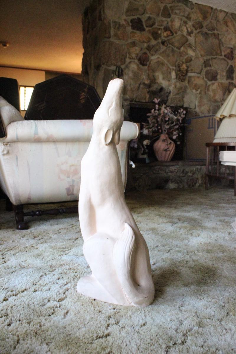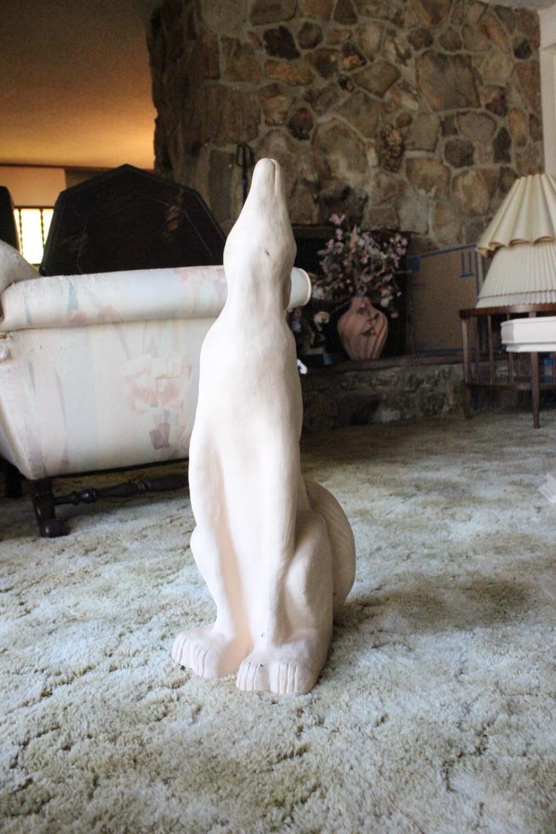 Retro Howling Coyote Wolf Statue. Off white/peachy sort of color. A little over 2' tall. Good condition.