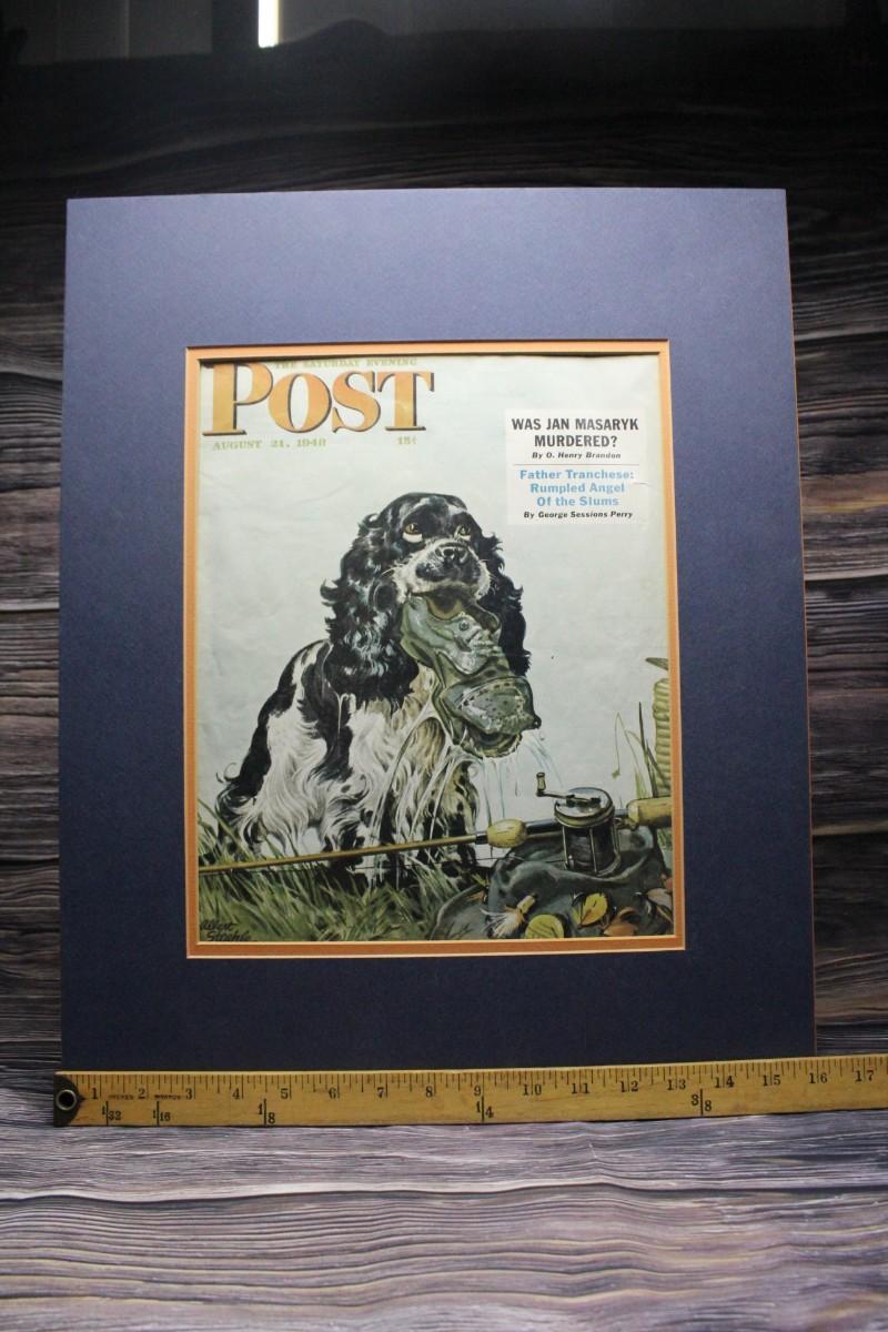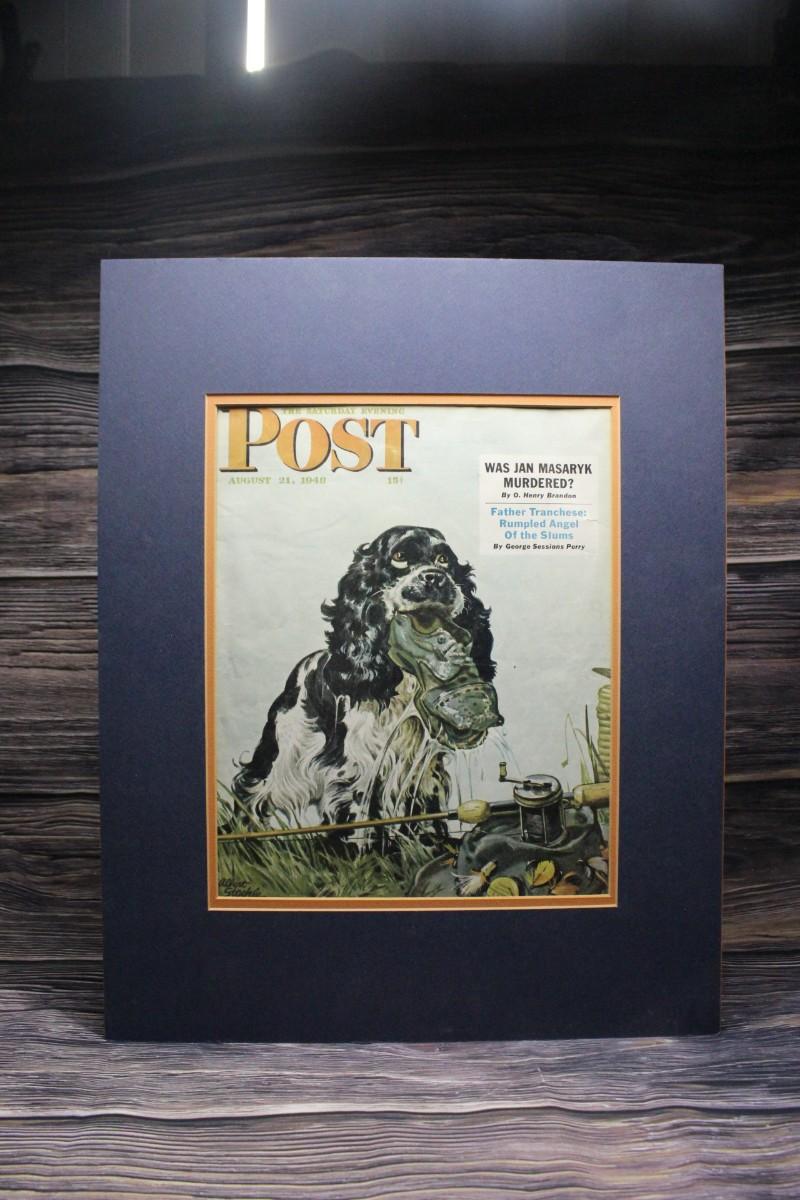 Vintage POST Magazine Cover featuring a Springer Spaniel. Matted ready for a frame.