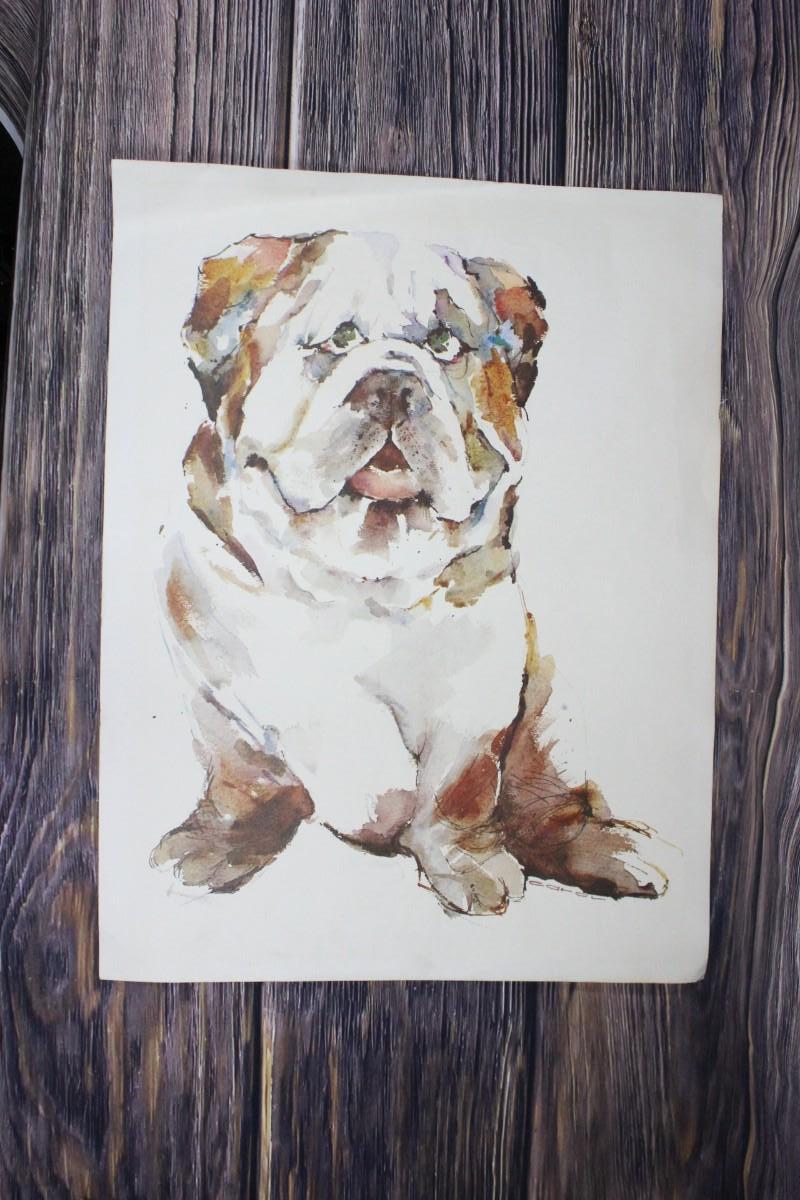 Unframed bulldog painting. Watercolor painting, no signature. Good condition.