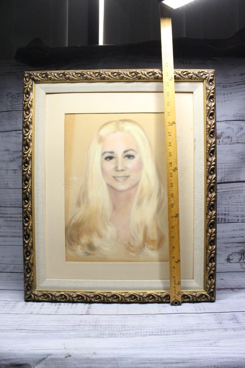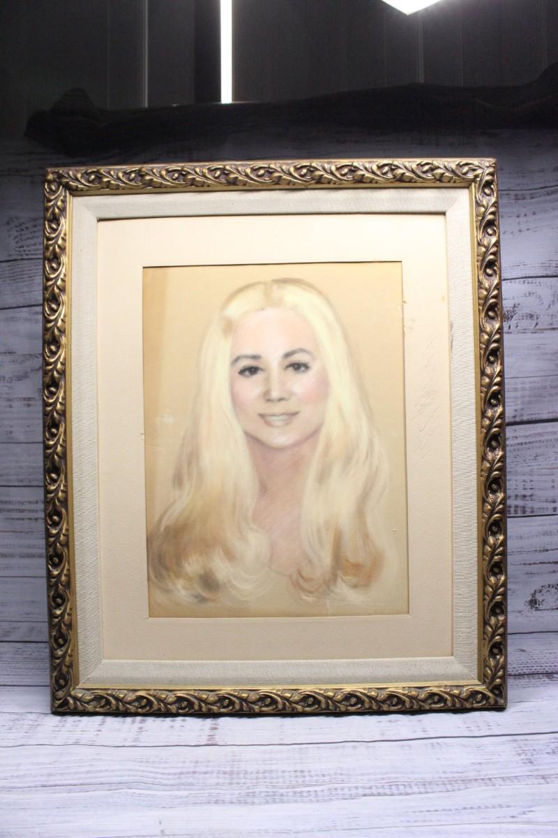 Vintage Portrait Painting of Happy Blonde Woman.. Some discolor from age.