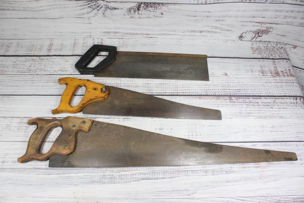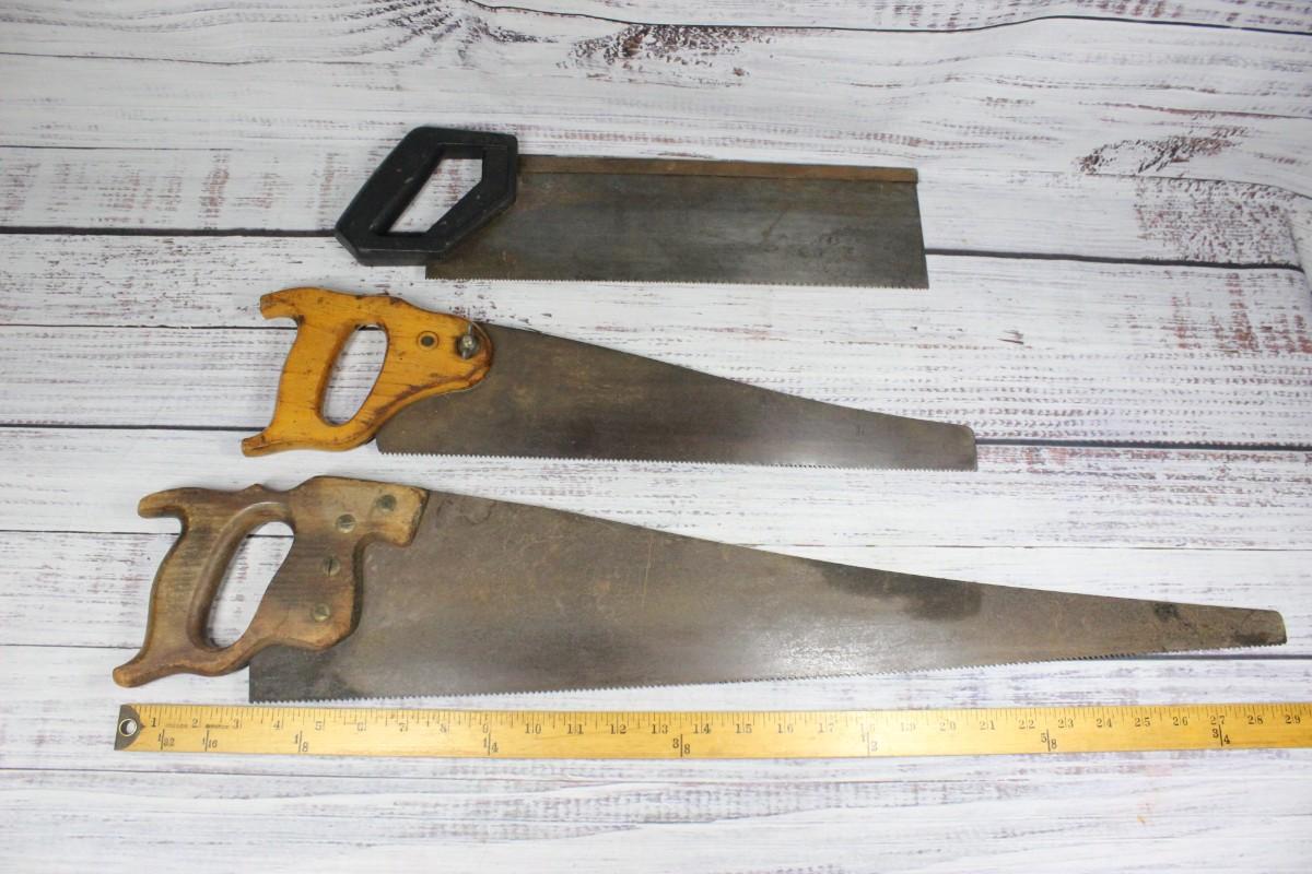 Wood Working Saw Lot, there's no significant damage or bends to any of the saws. Check pictures for more details and for sizing.