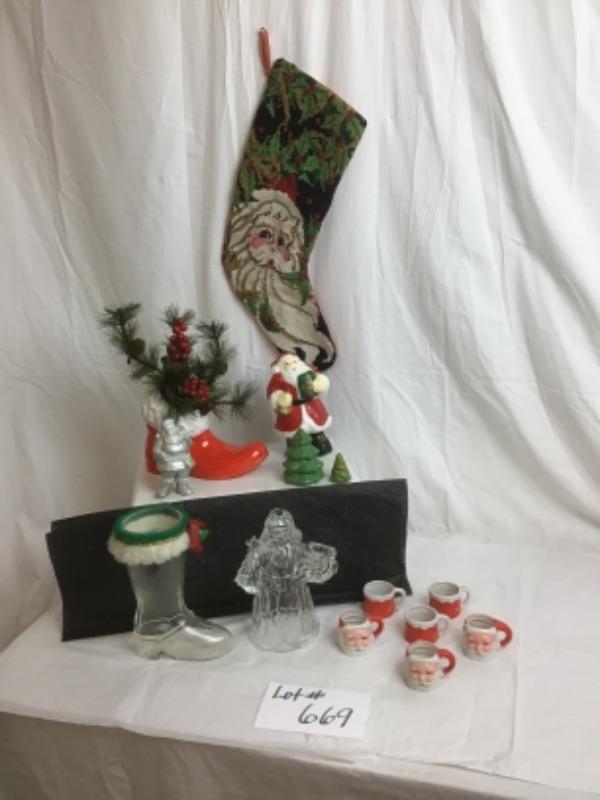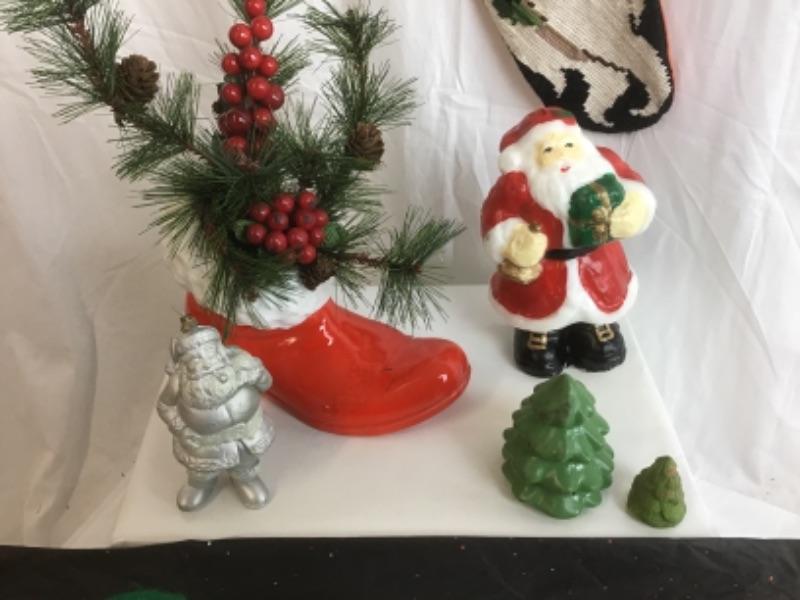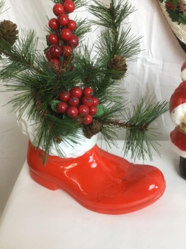 Vintage Glass Santa Boot ( lite soiling around top of the boot ) 7.75” Tall