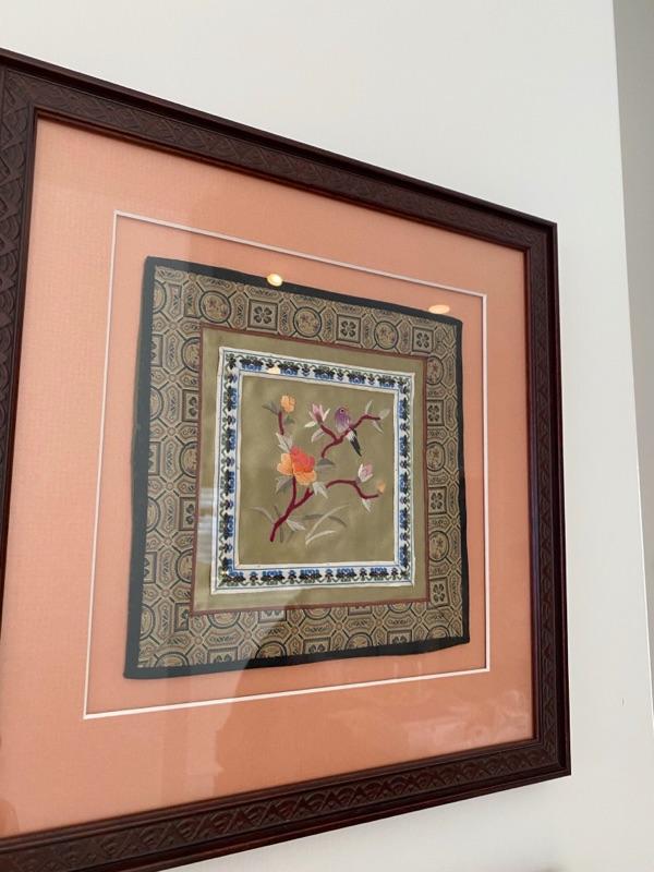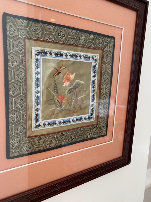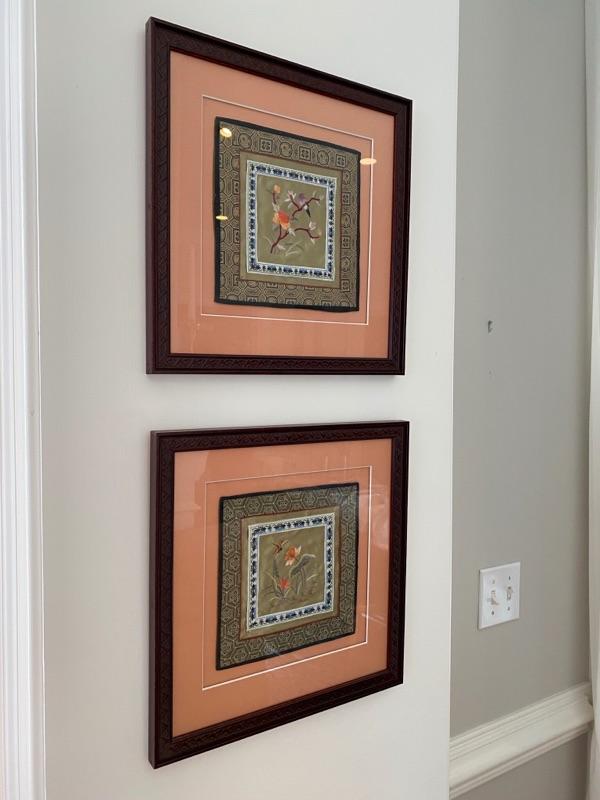 Pair of Framed and Matted Oriental Silk Tapestries