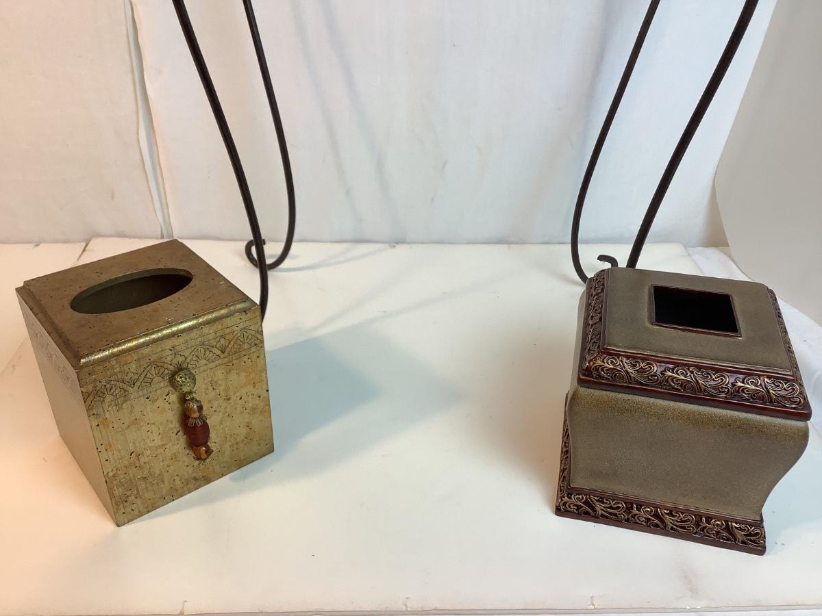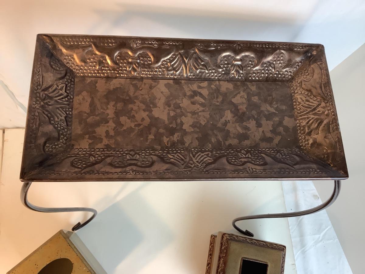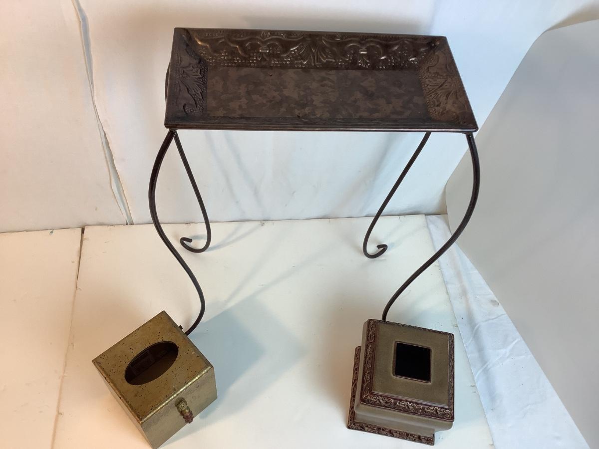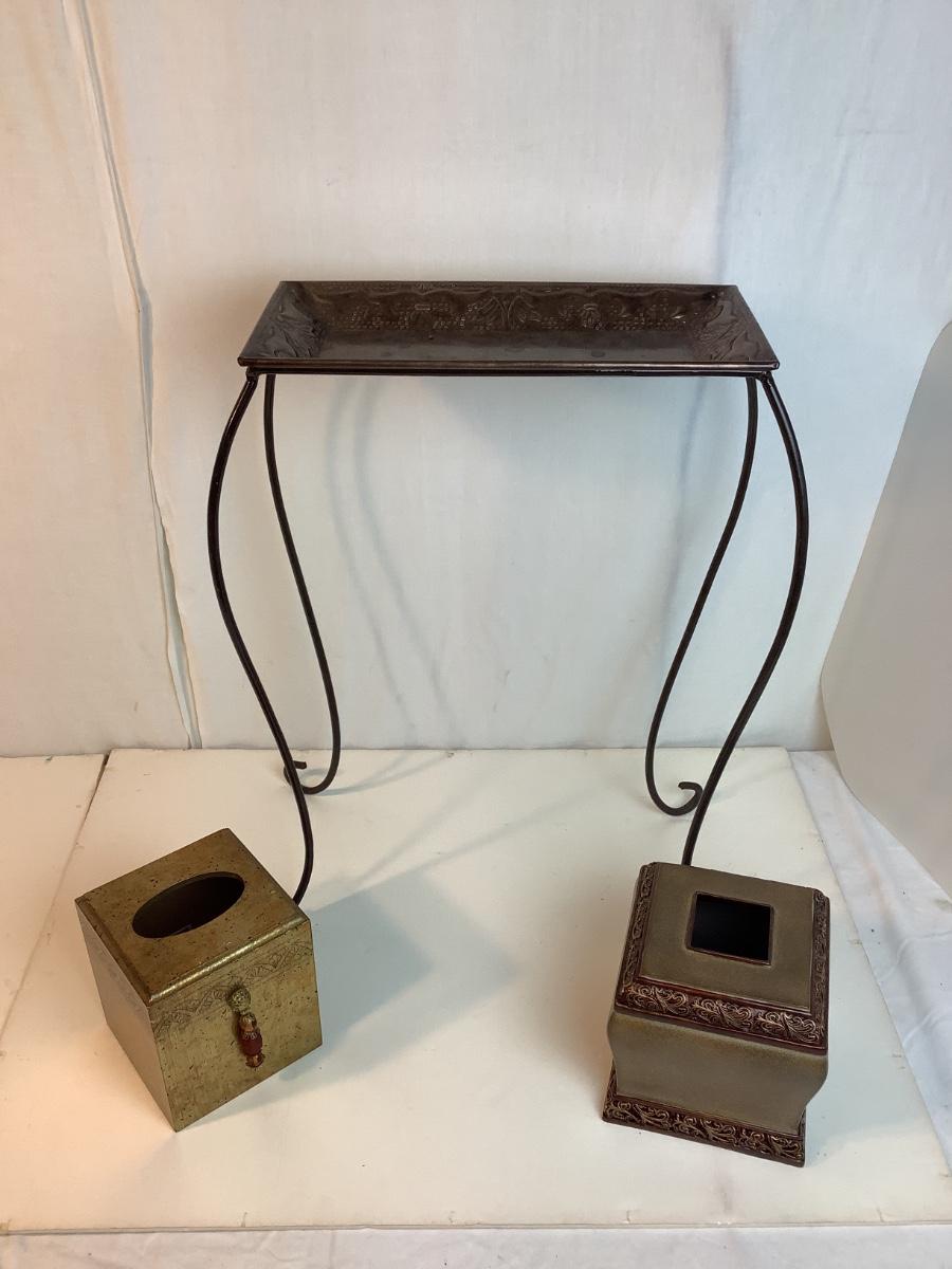A - 777  Decorative Aluminum Tray/Stand, Two Tissue Box Covers, Tray
