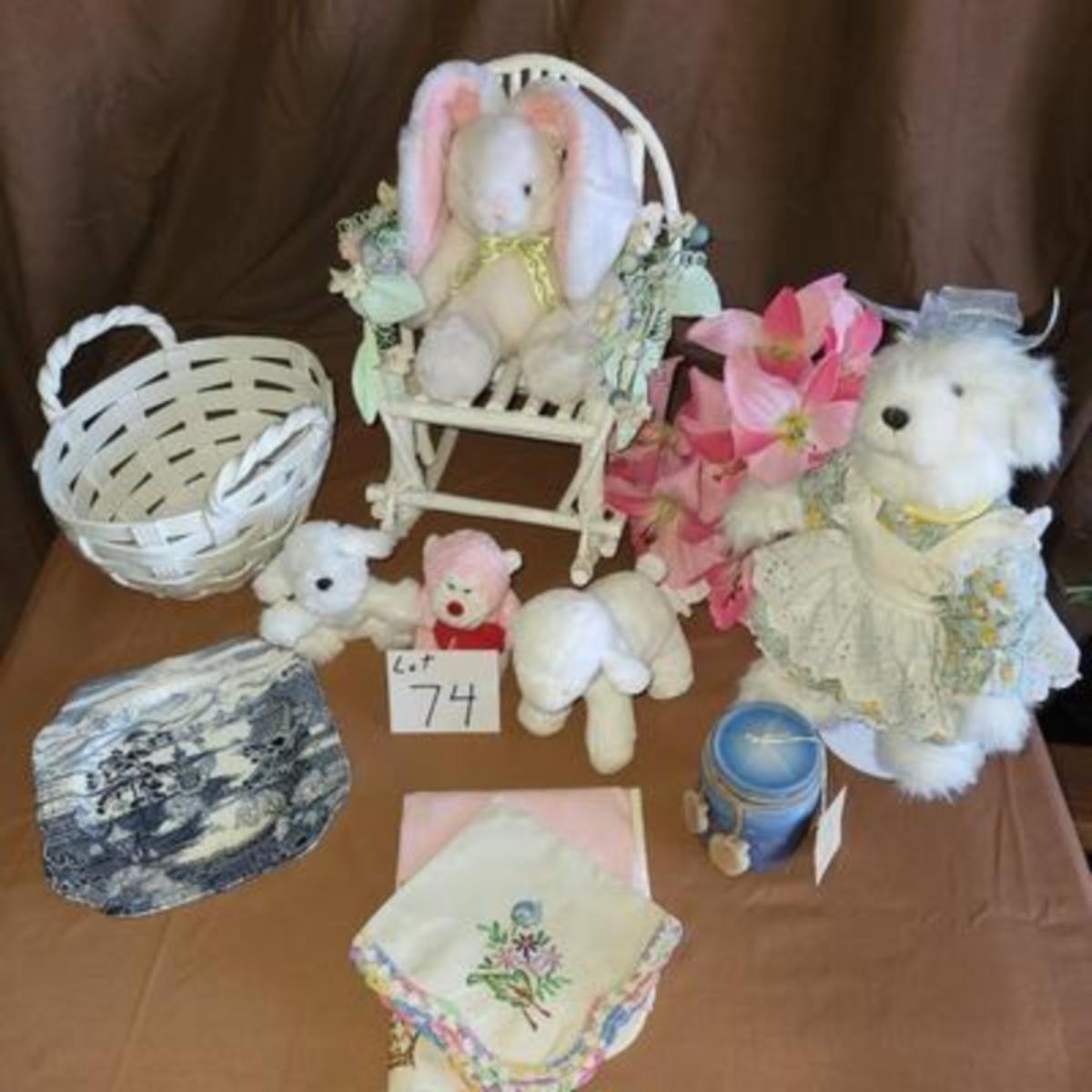 A BEAR, BUNNY, BEENIES, A PRETTY PORCELAIN BASKET AND MORE!