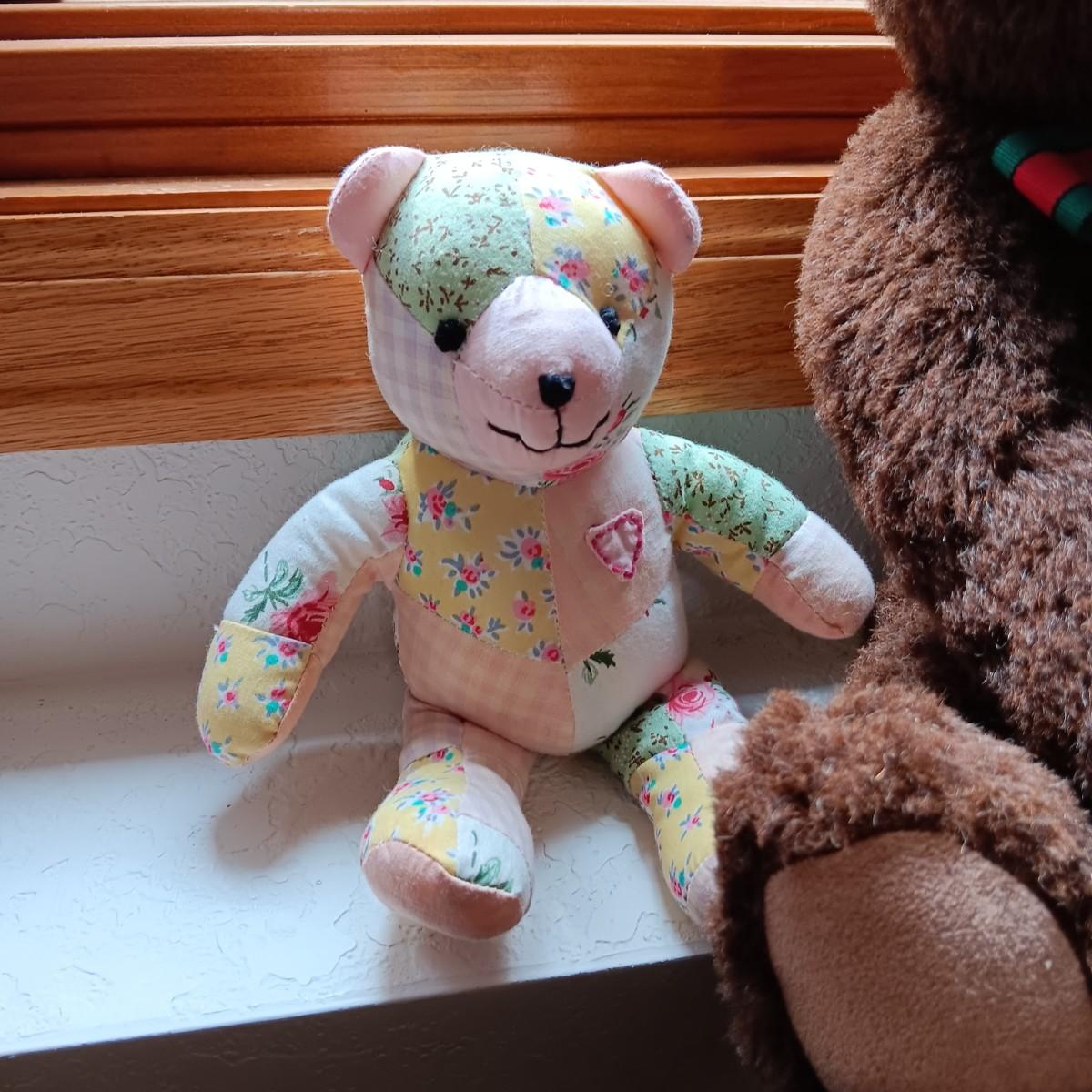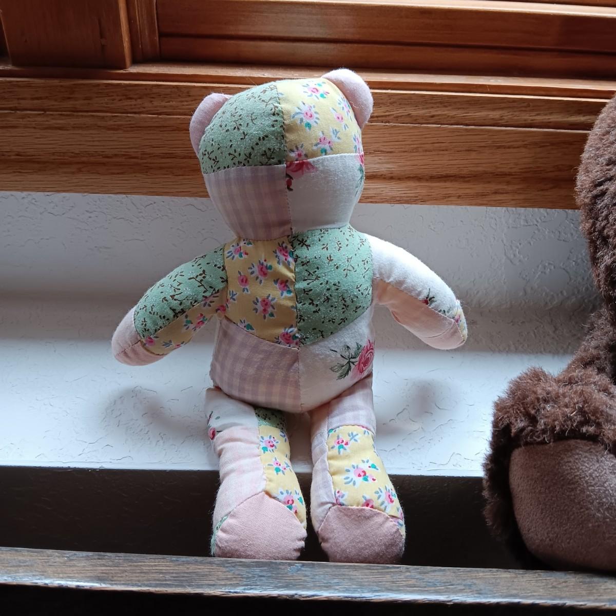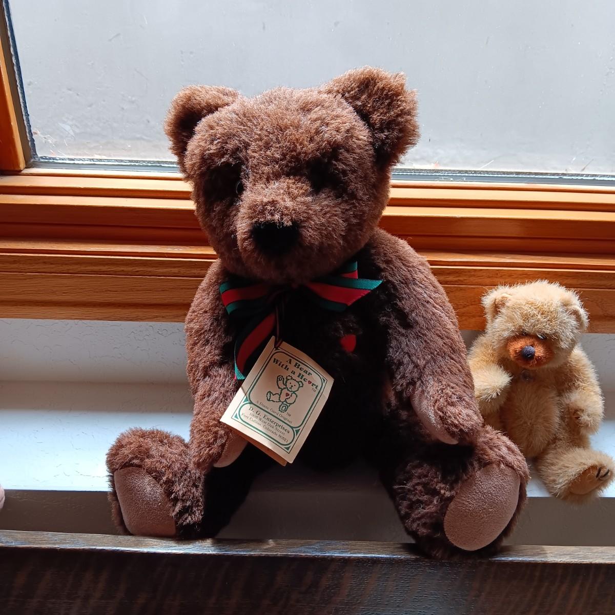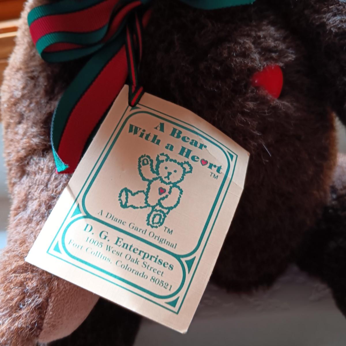 "A BEAR WITH A HEART" A DIANE GARD ORIGINAL, VINTAGE PATCHWORK BEAR AND 1993 TY BEAR