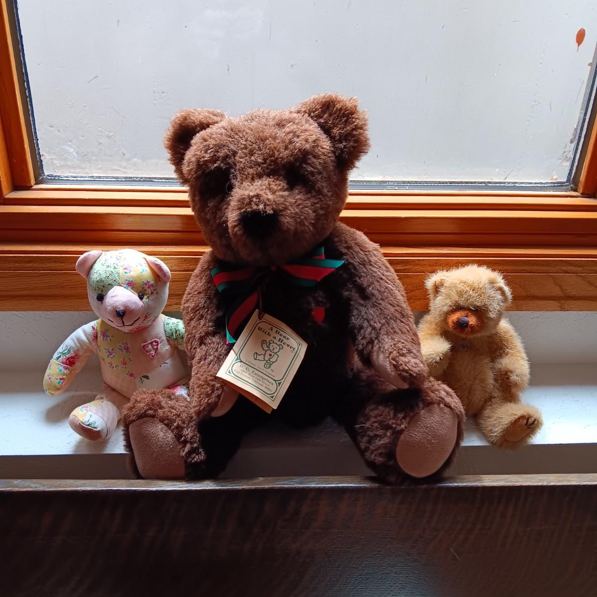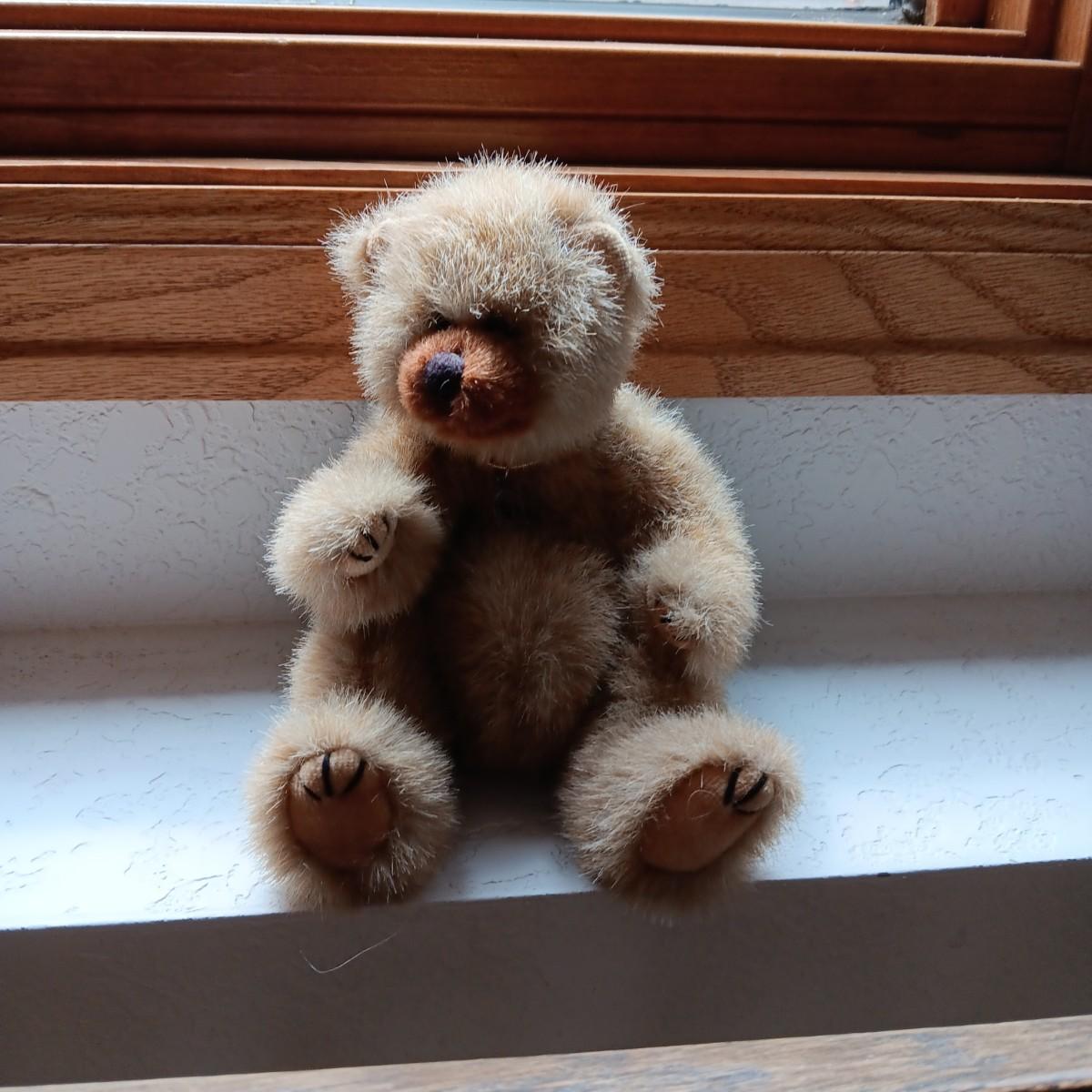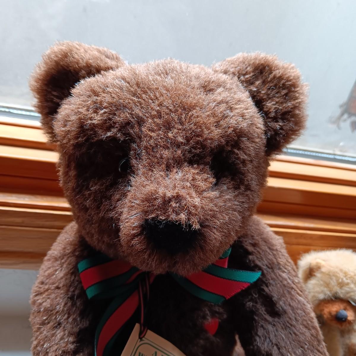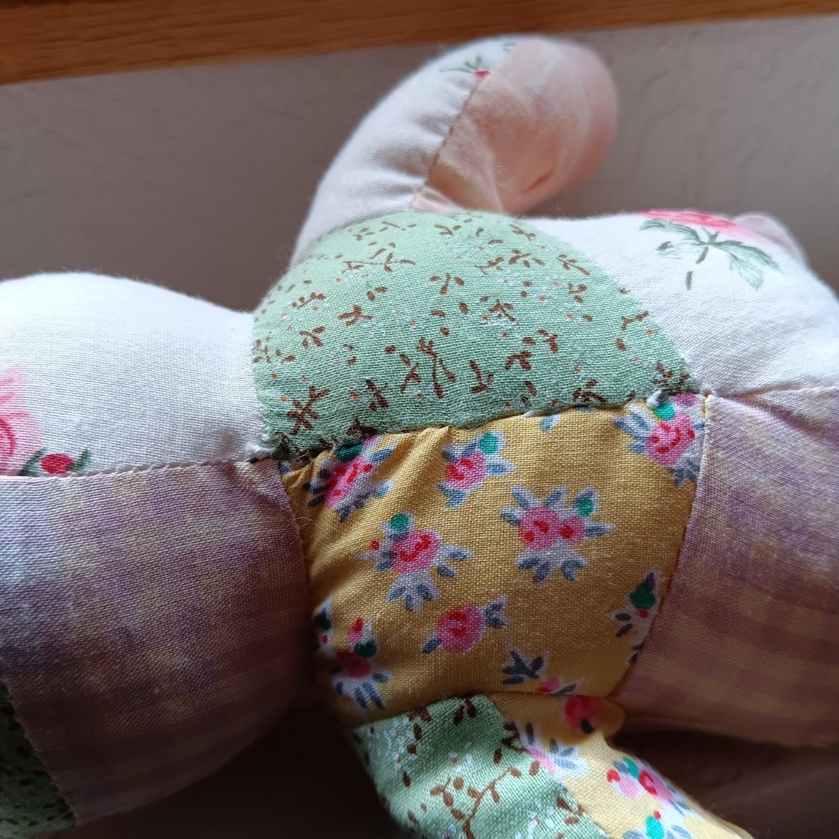 "A BEAR WITH A HEART" A DIANE GARD ORIGINAL, VINTAGE PATCHWORK BEAR AND 1993 TY BEAR