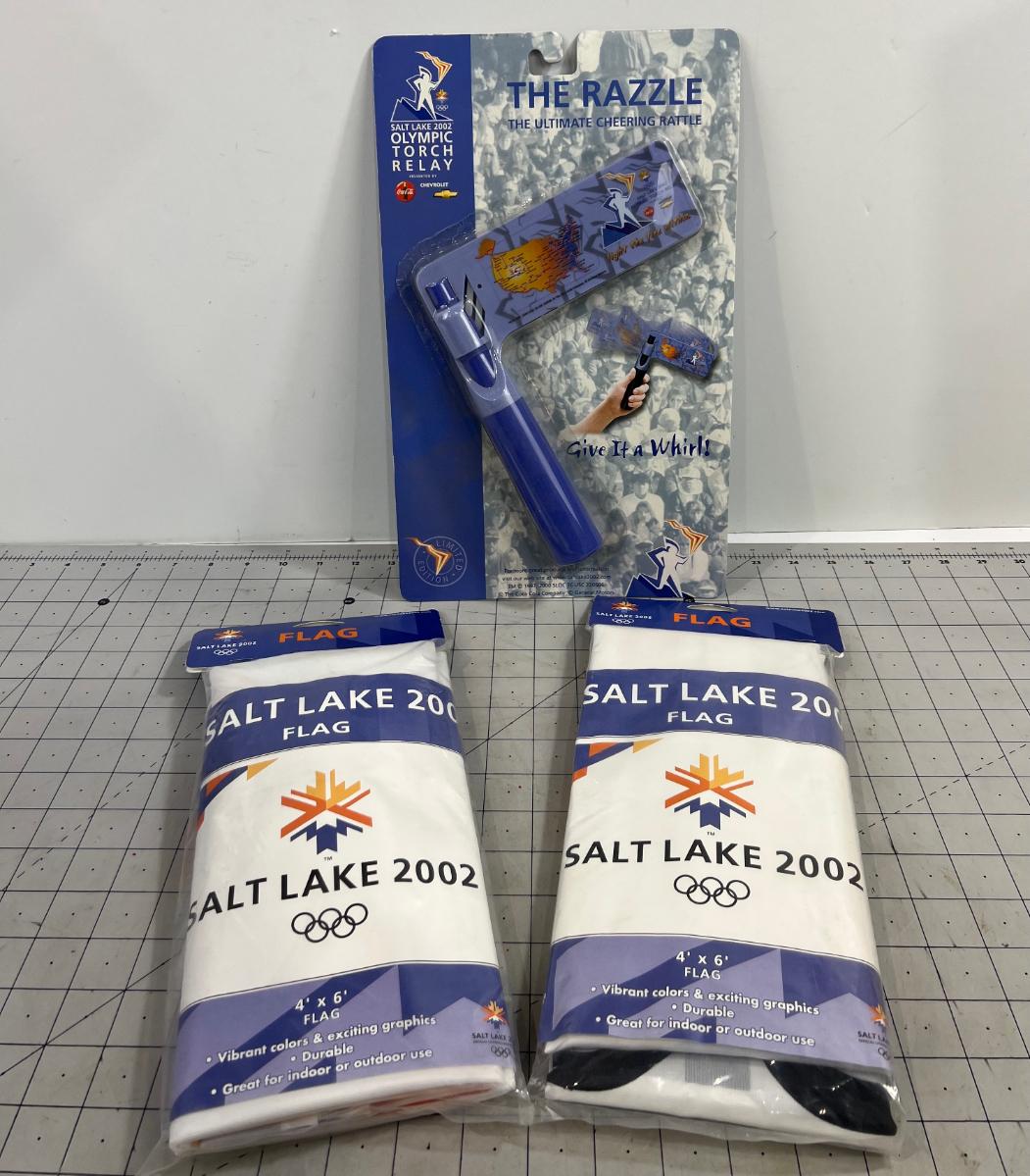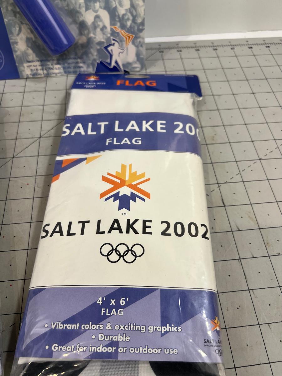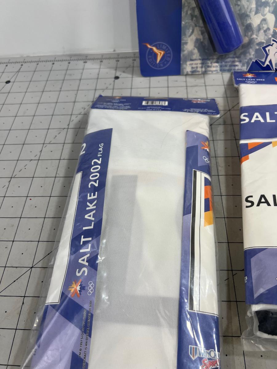 A bit of Olympic Memoribilia:2 Flags, Torch and Rattle