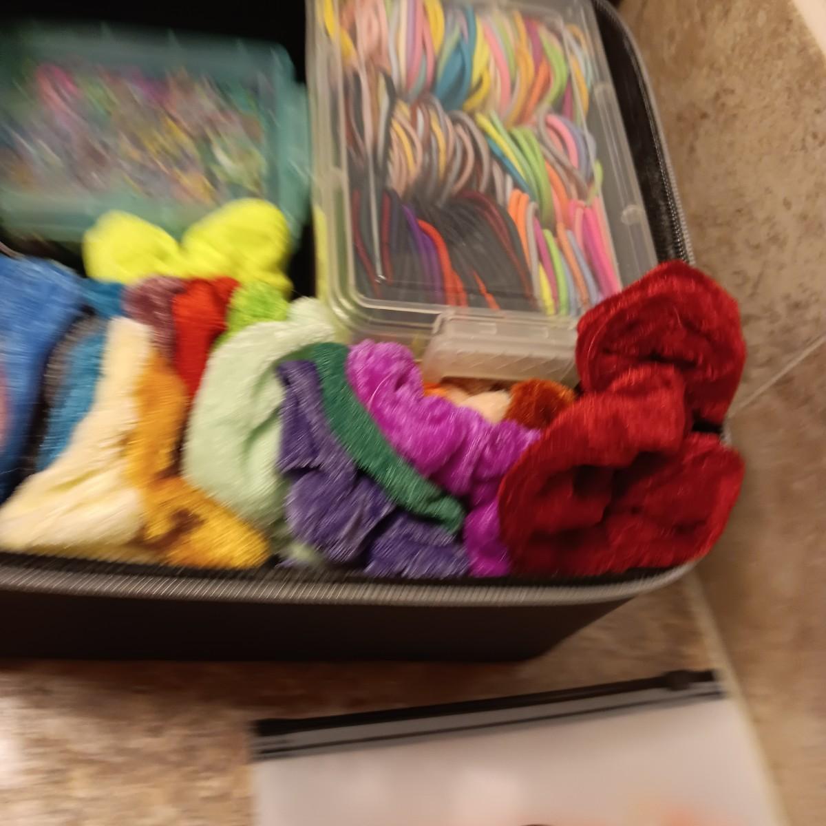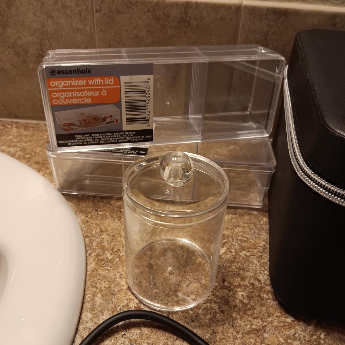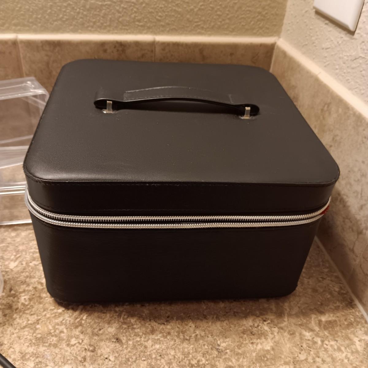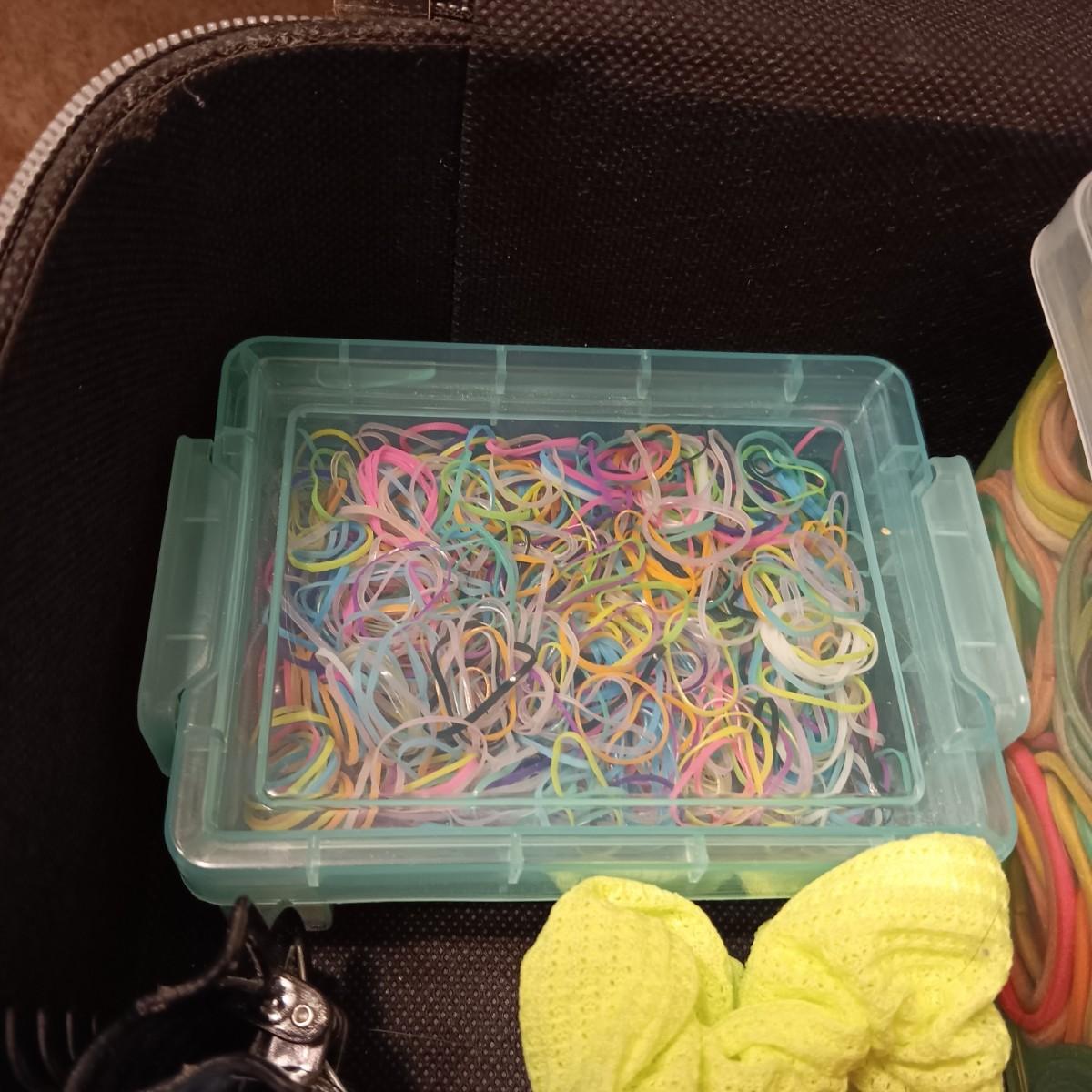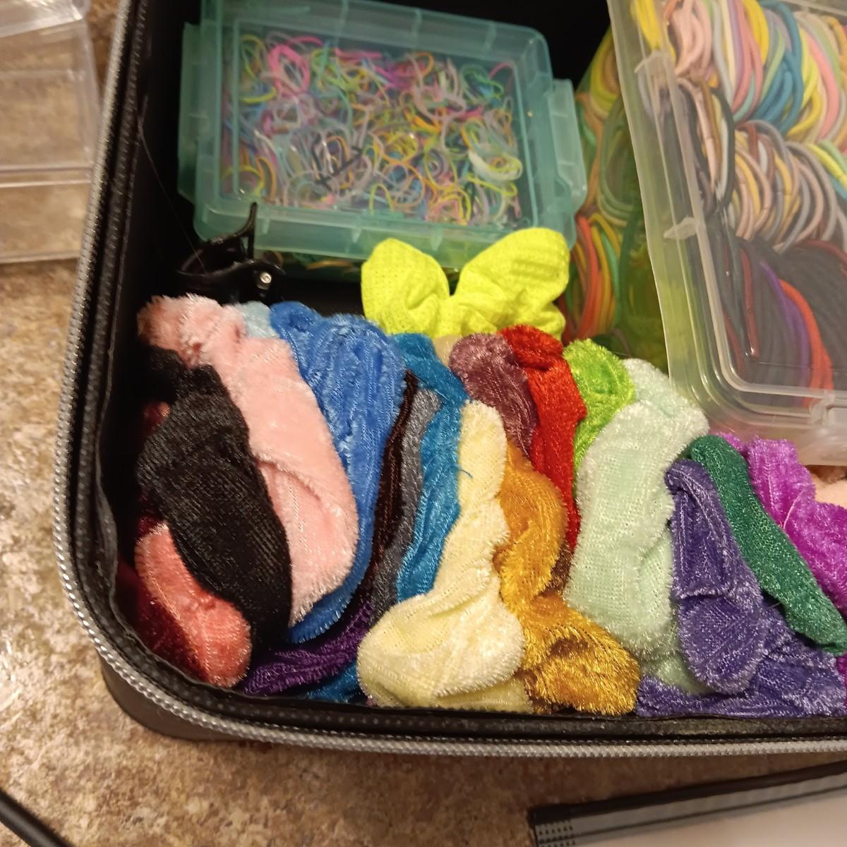 A BOX FULL OF HAIR CARE ITEMS, HAIR DRYING/STYLING BRUSH AND ORGANIZERS