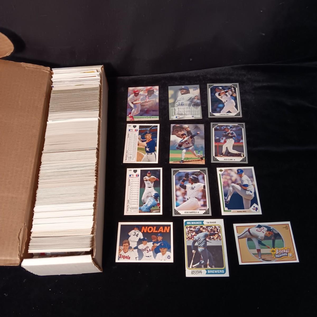 A BOX OF BASEBALL SPORT TRADING CARDS