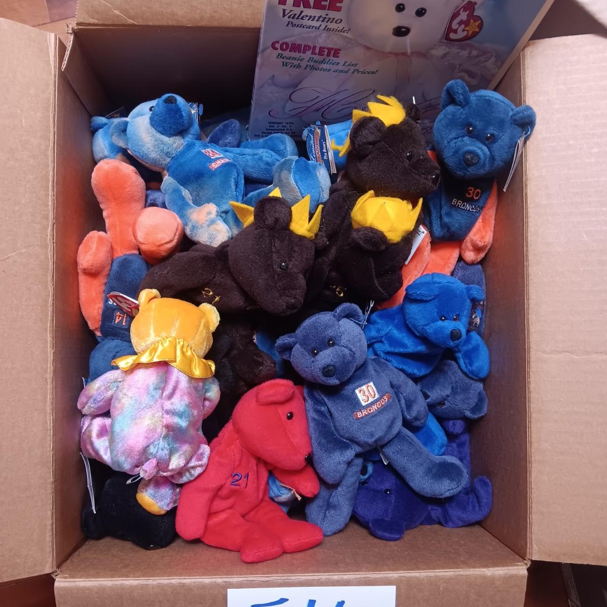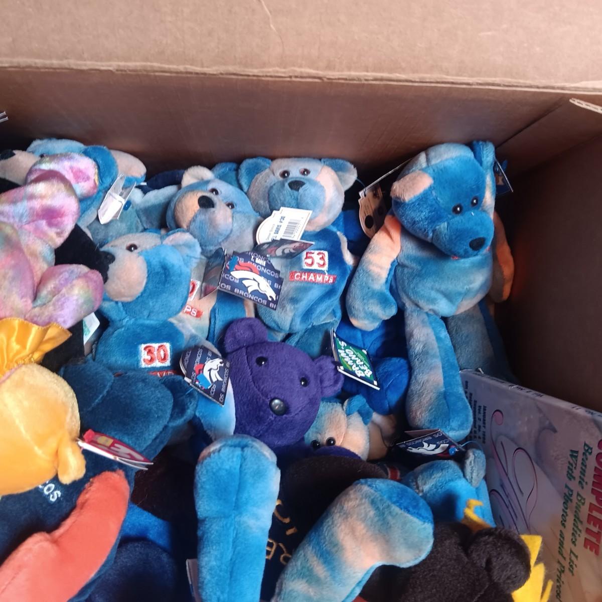 A BOX OF MOSTLY SPORTS TEAM BEANIE BABIES