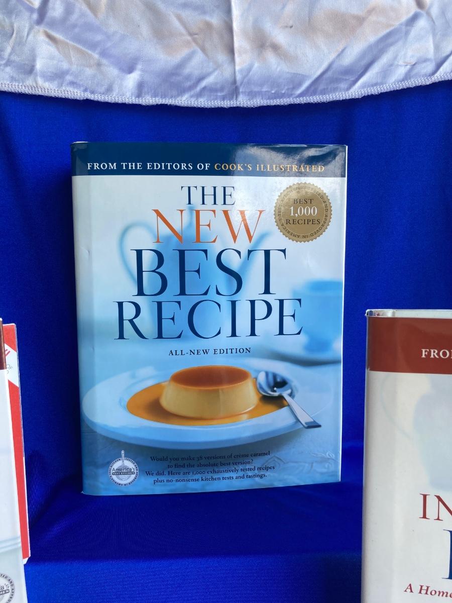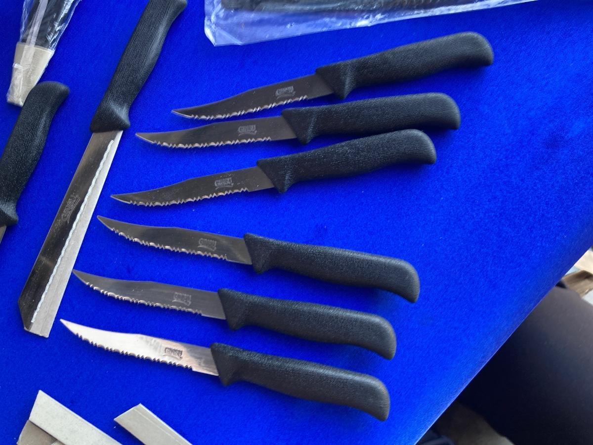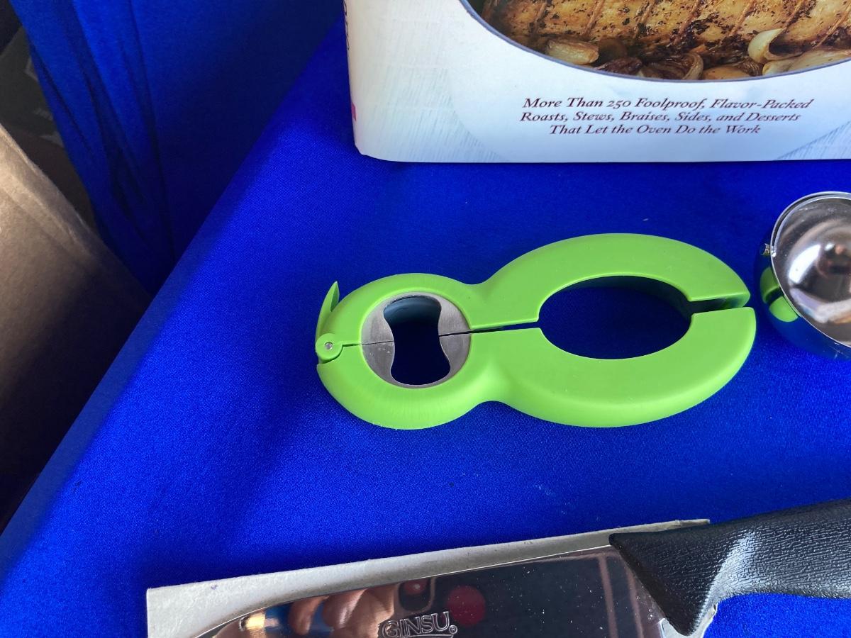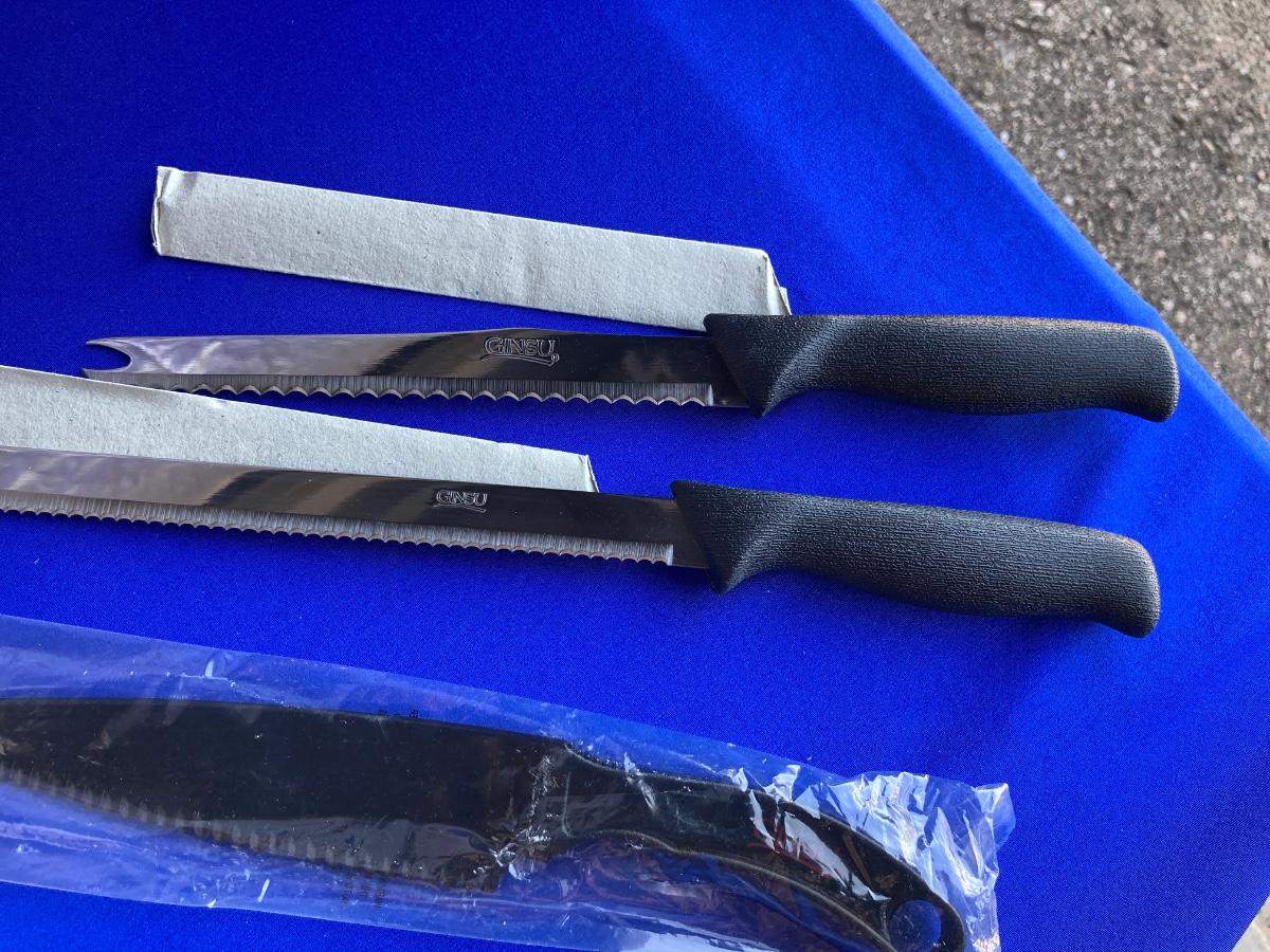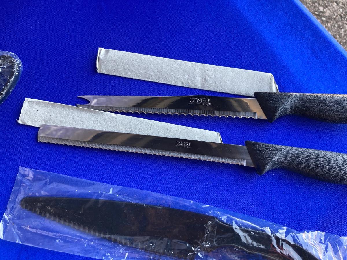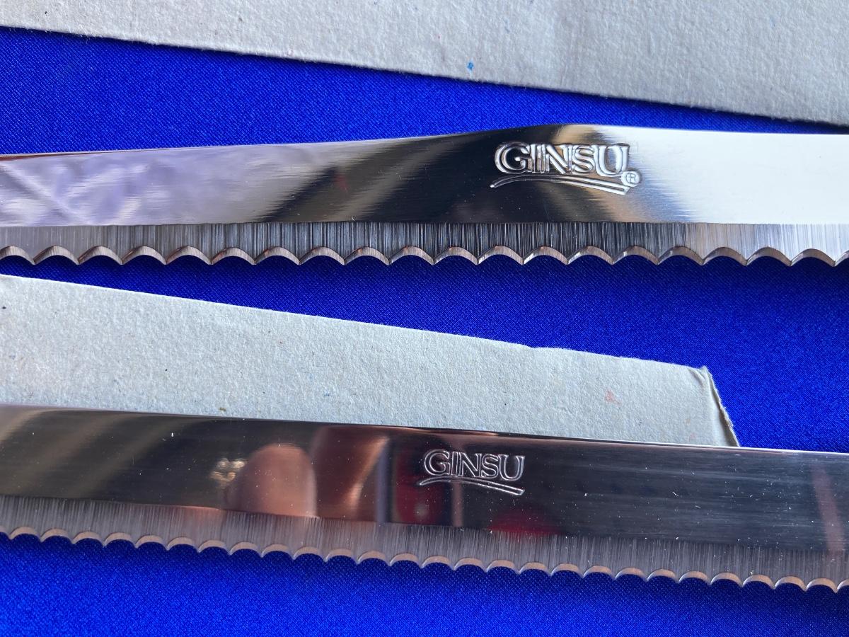 A BRAND NEW SET OF GINSU KNIFES, COOK BOOKS AND SOME OTHER UTENSILS