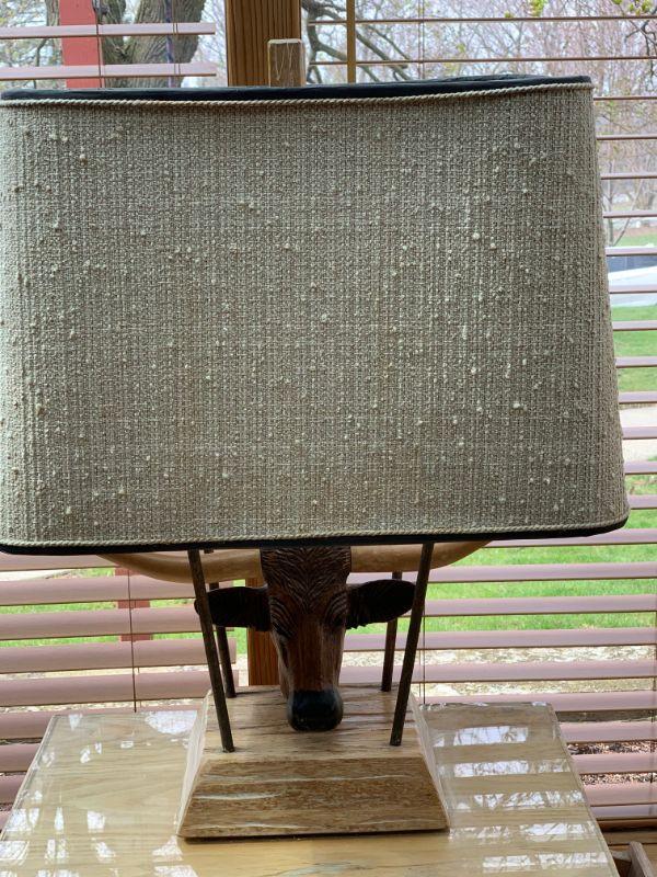 AB Ranch oak lamp 26" tall x shade is 20" wide and steer is 8" x 16"
