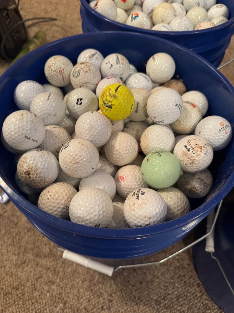 A bucket full of used Golf Balls