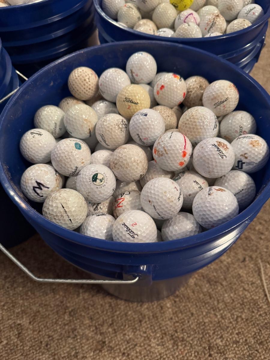 A bucket full of used Golf Balls