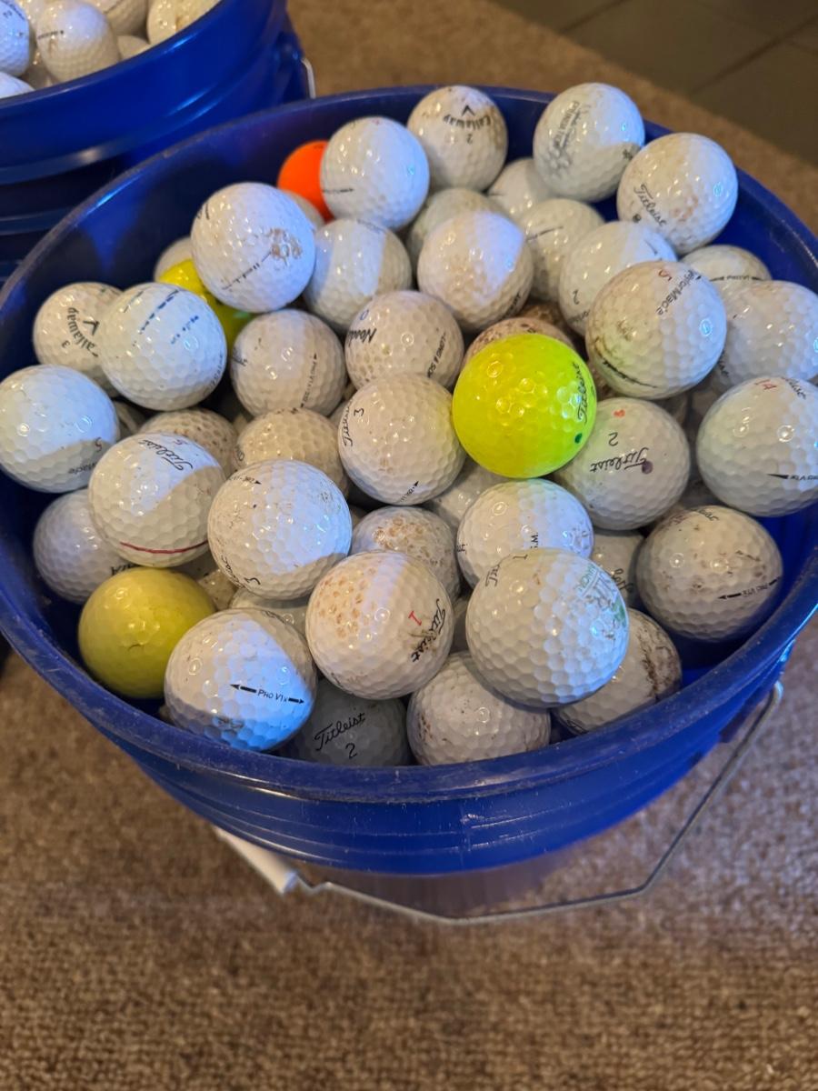A bucket full of used Golf Balls