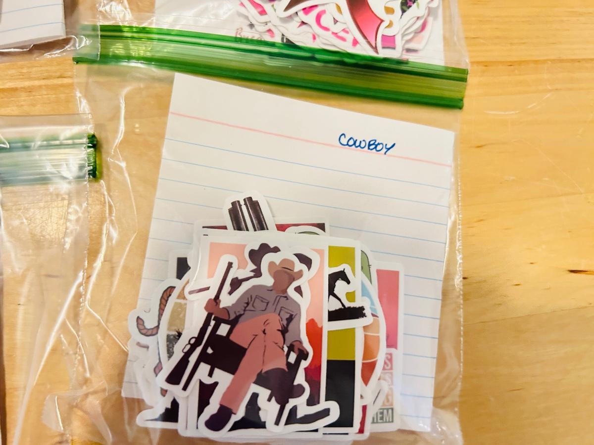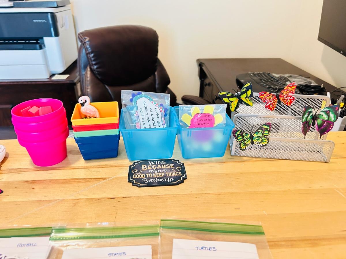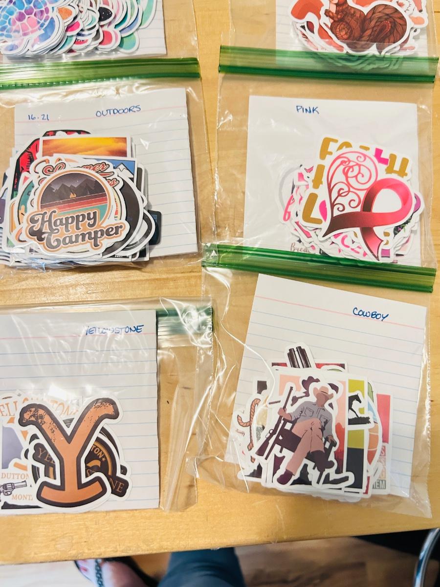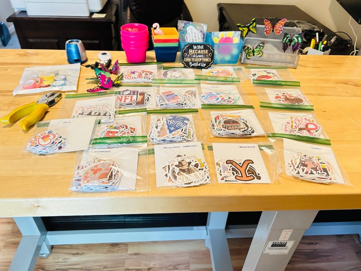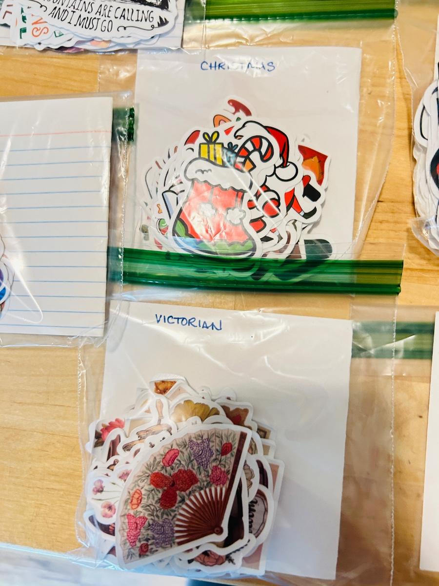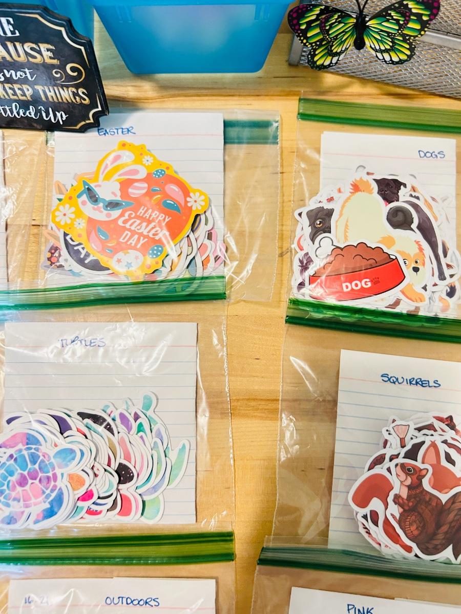 A BUNCH OF NICELY SORTED STICKERS, HOLE PUNCH, MUSIC BULLET SPEAKER, MAGNETS, SMALL ORGANIZERS AND MORE!