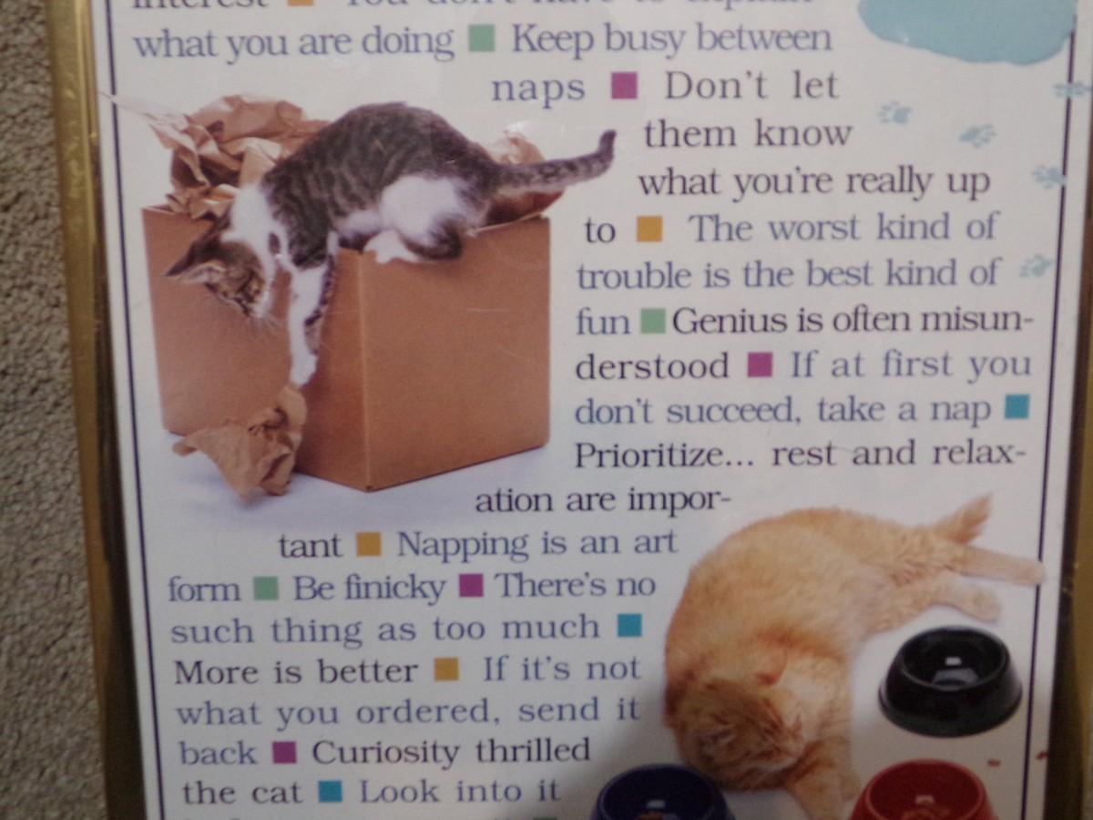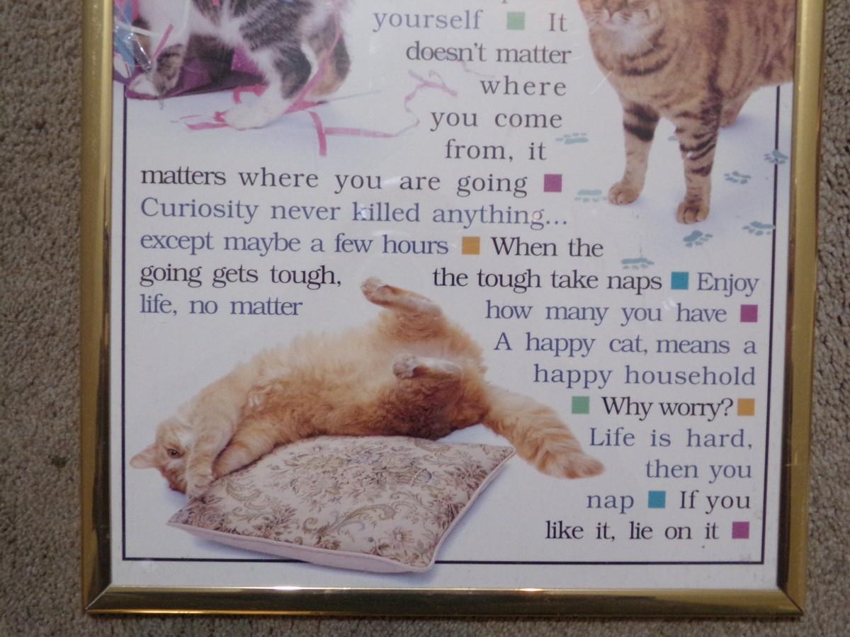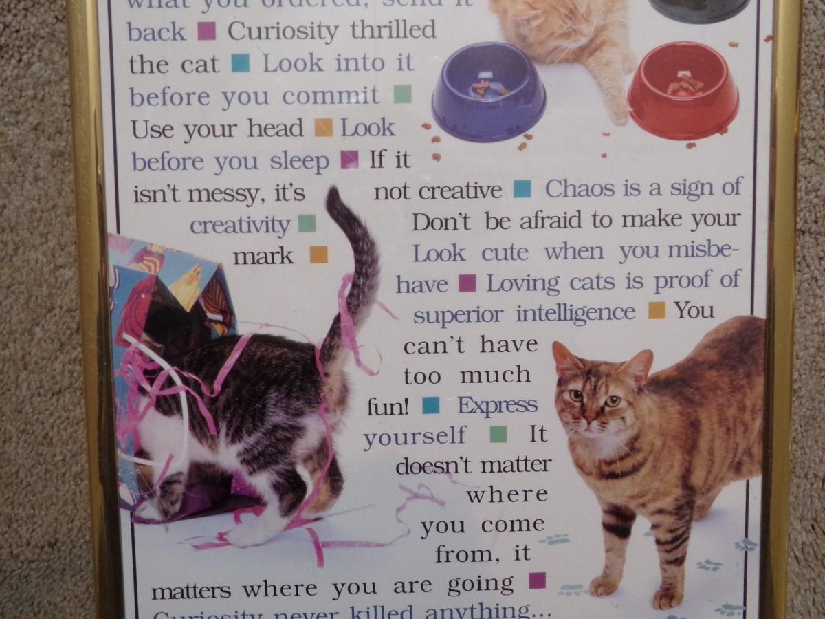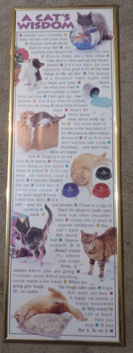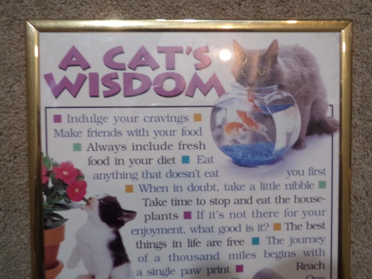 "A Cat's Wisdom" framed poster, Christmas for the "cat lover" in your life. NICE. used 36"x10"
