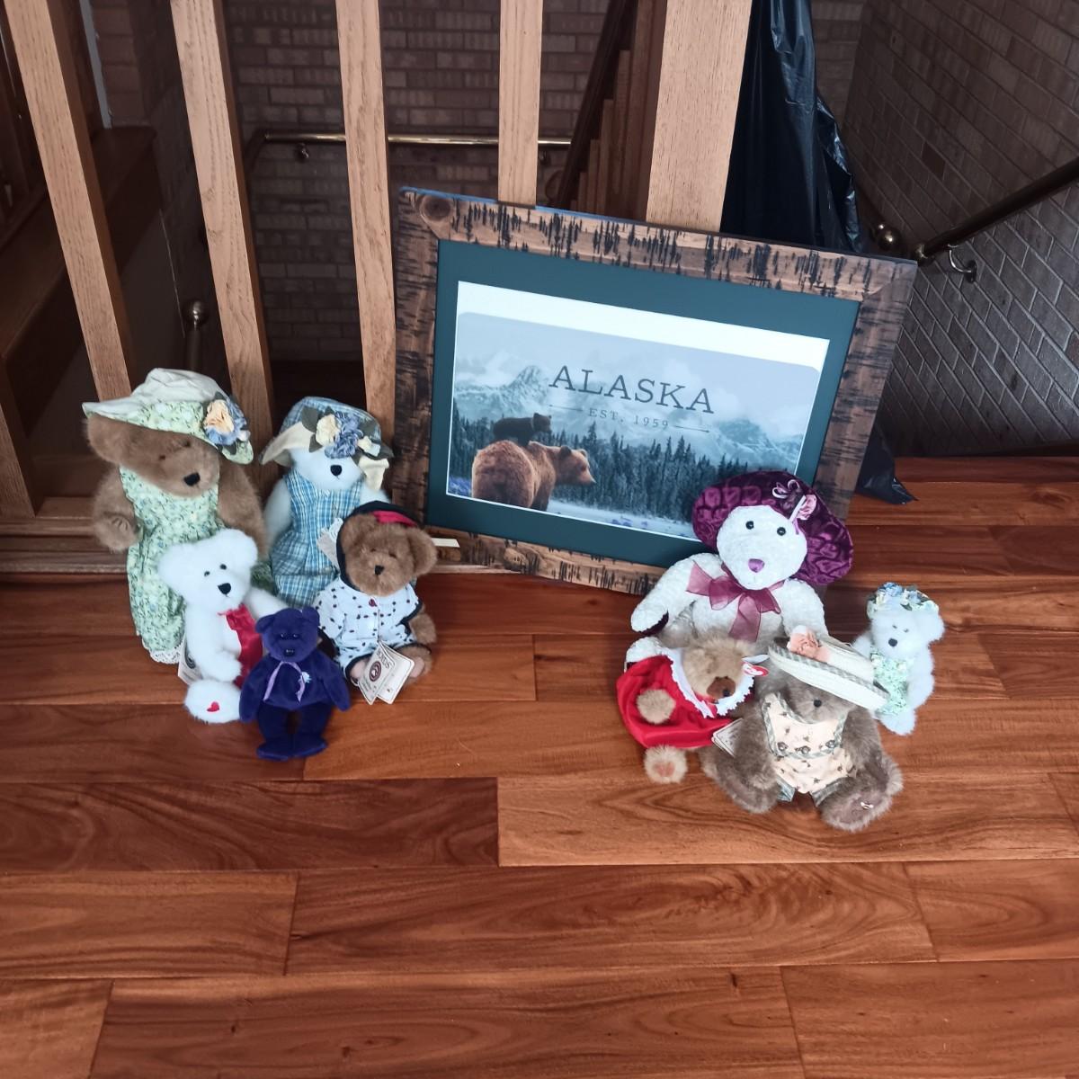 A COLLECTION OF BOYD'S BEARS AND A HOLOGRAM ALASKA PICTURE